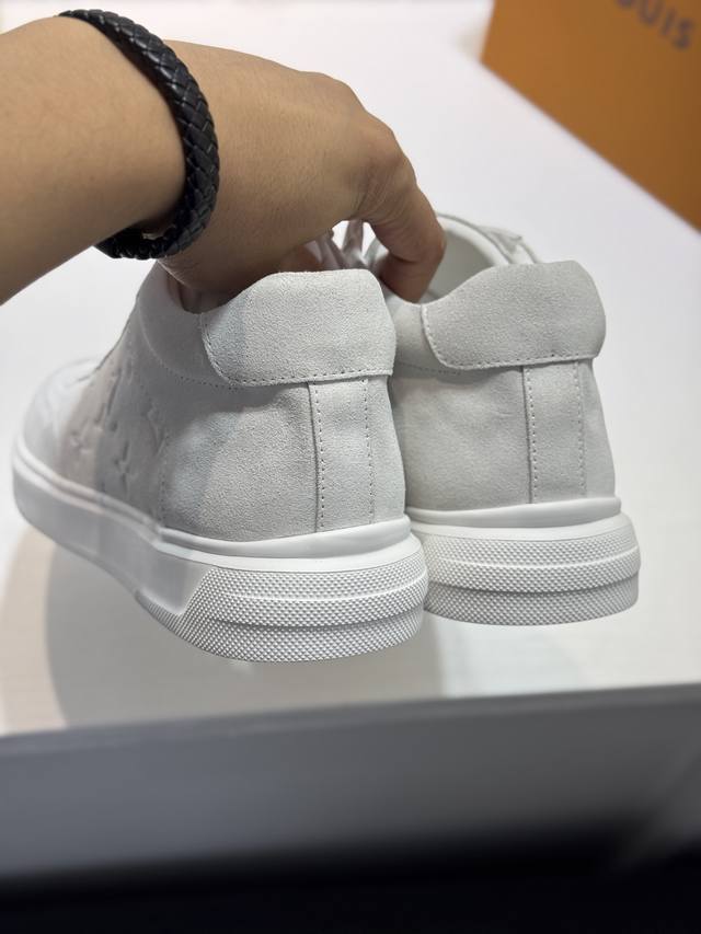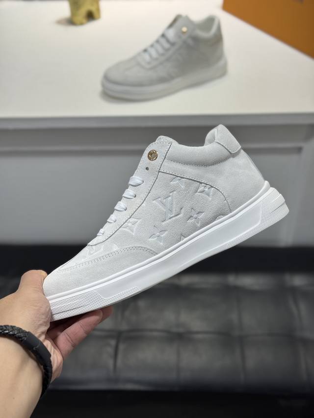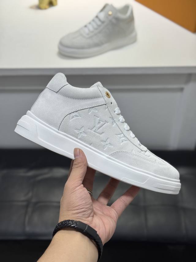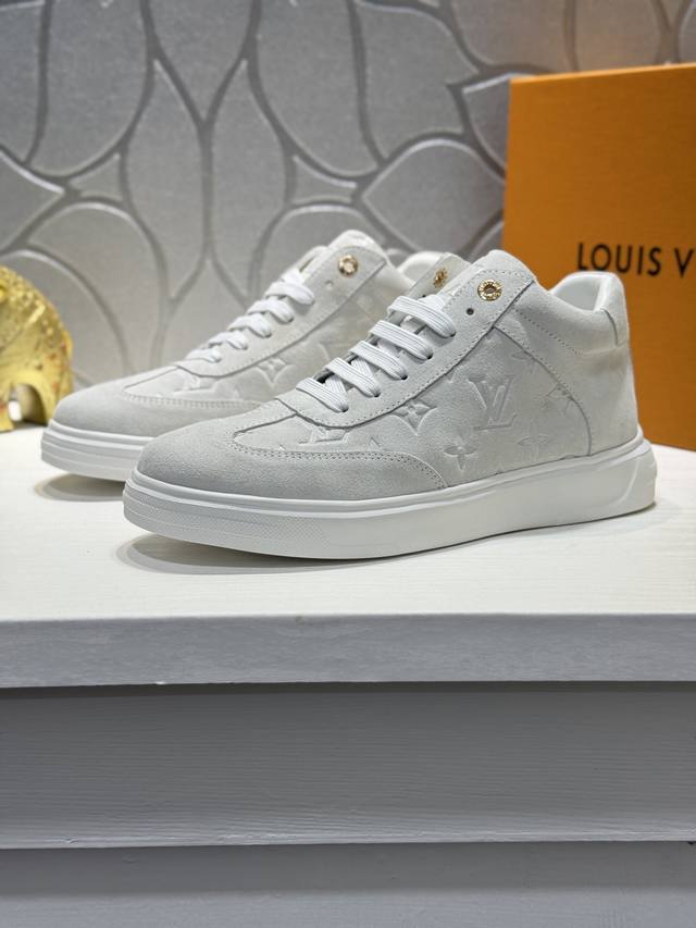 Louis Vuitton (LV) New Men's High-Top Sneakers, featuring a stylish upper crafted from suede cowhide. The sheepskin lining is luxurious and comfortable, and the original rubber outsole is lightweight and durable! Handmade, details determine quality! Sizes: 38-44, 45 (custom sizes available)