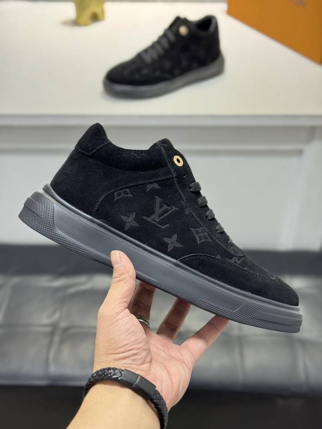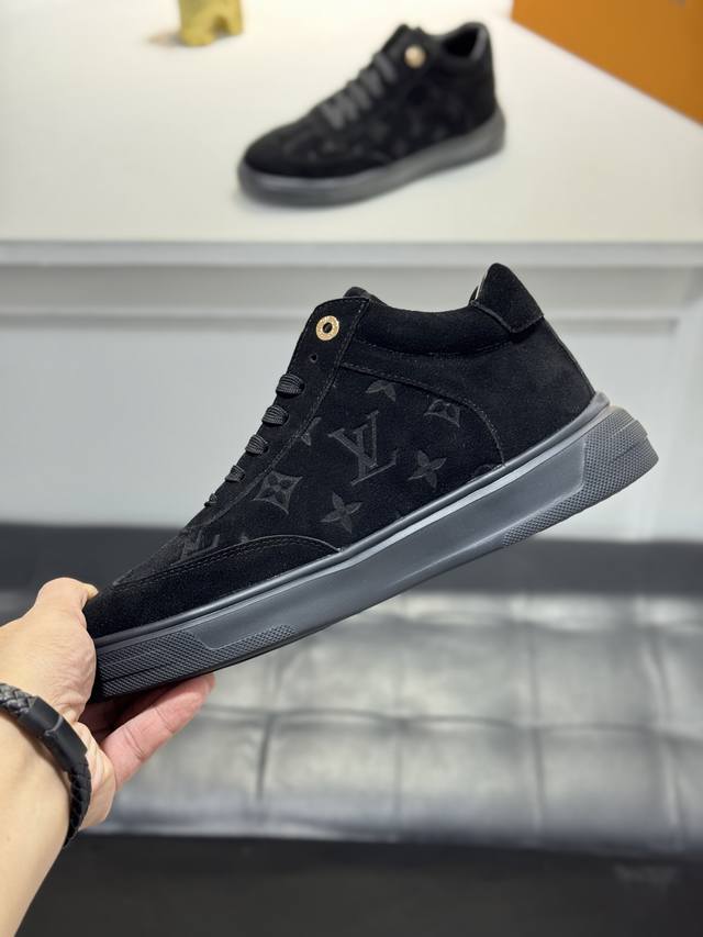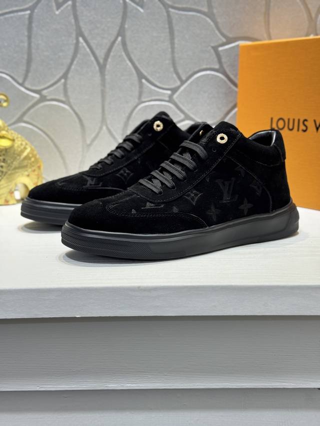 Louis Vuitton (LV) New Men's High-Top Sneakers, featuring a stylish upper crafted from suede cowhide. The sheepskin lining is luxurious and comfortable, and the original rubber outsole is lightweight and durable! Handmade, details determine quality! Sizes: 38-44, 45 (custom sizes available)
