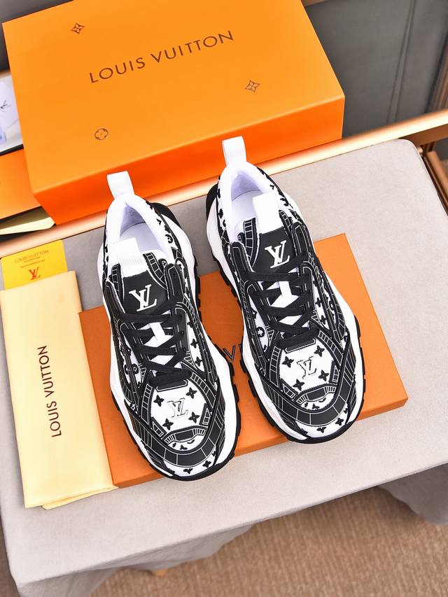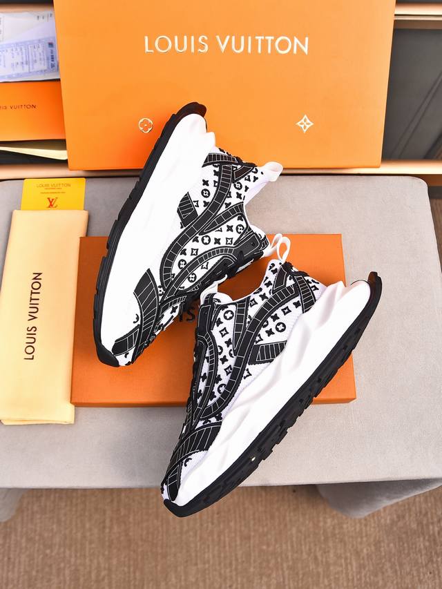 Louis Vuitton New Milan Fashion Show Collection. Featuring the iconic LV logo, exuding sophistication and a must-have for fashionistas. Imported mesh upper with high-tech epoxy resin finish, breathable cowhide lining, genuine leather insole, and specially supplied foam outsole. Sizes 38-44, 45, 46. Custom orders accepted.