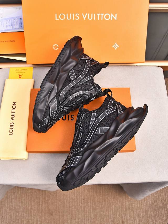 Louis Vuitton New Milan Fashion Show Collection. Featuring the iconic LV logo, exuding sophistication and a must-have for fashionistas. Imported mesh upper with high-tech epoxy resin finish, breathable cowhide lining, genuine leather insole, and specially supplied foam outsole. Sizes 38-44, 45, 46. Custom orders accepted.