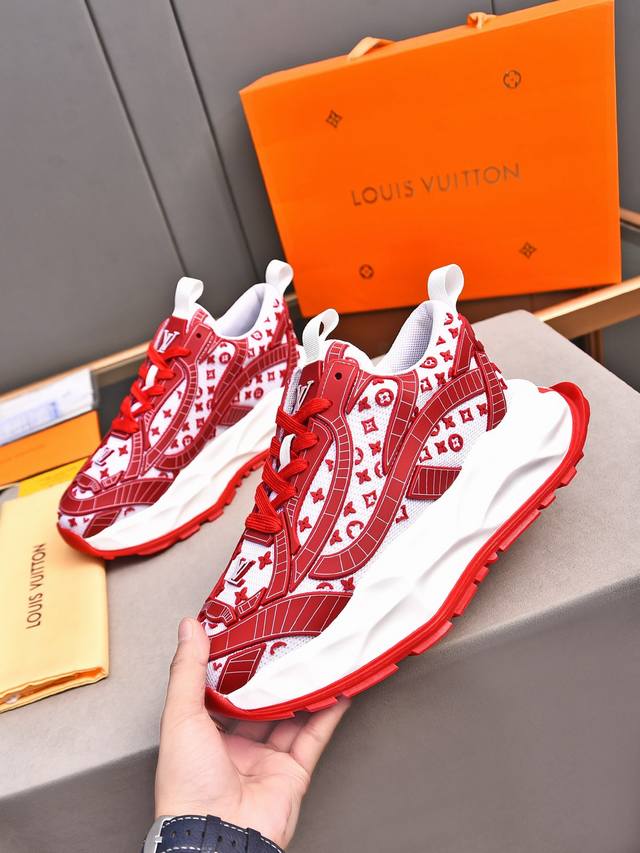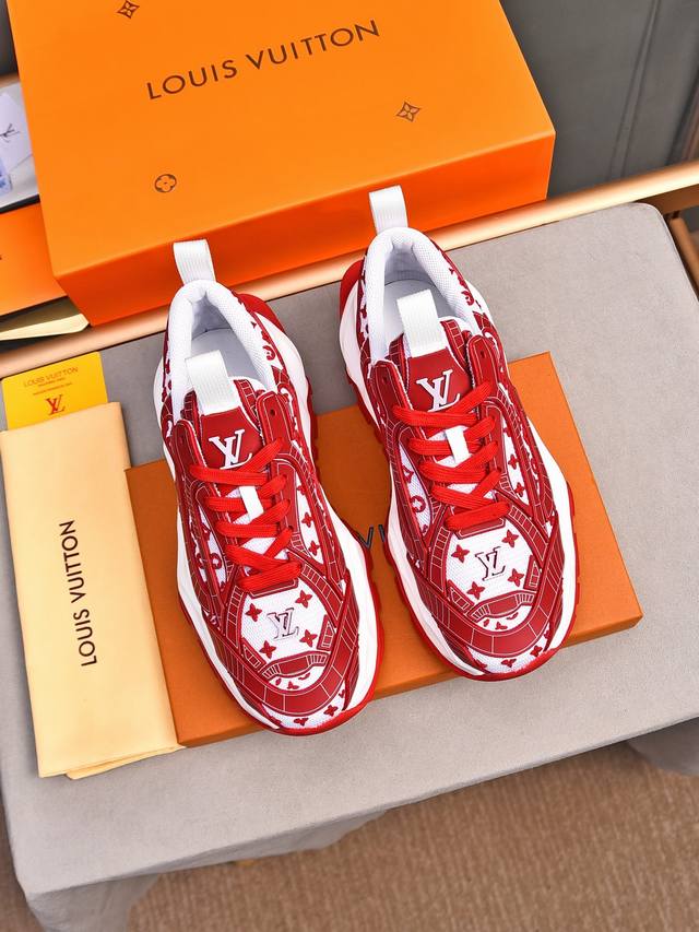 Louis Vuitton New Milan Fashion Show Collection. Featuring the iconic LV logo, exuding sophistication and a must-have for fashionistas. Imported mesh upper with high-tech epoxy resin finish, breathable cowhide lining, genuine leather insole, and specially supplied foam outsole. Sizes 38-44, 45, 46. Custom orders accepted.