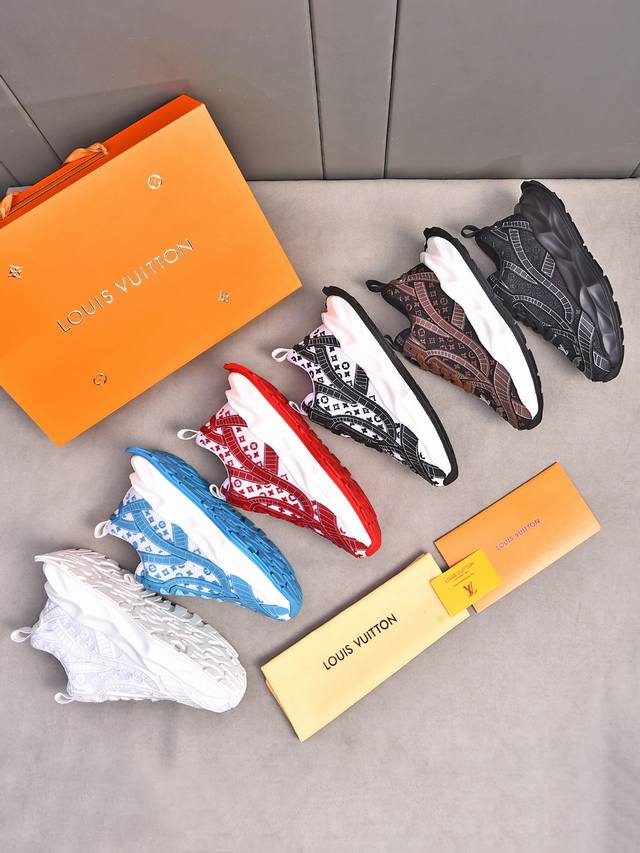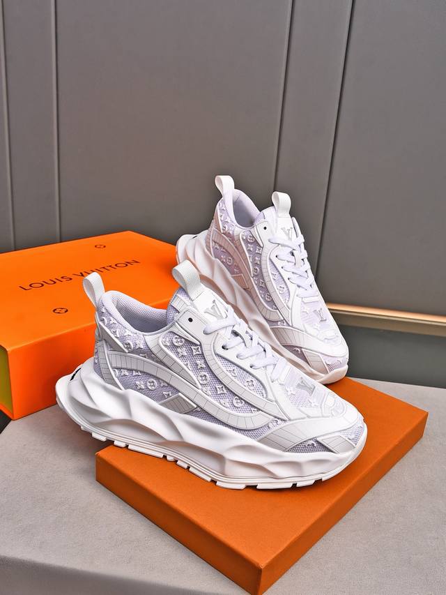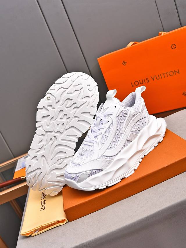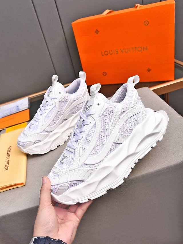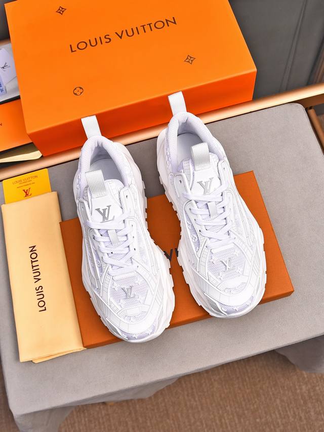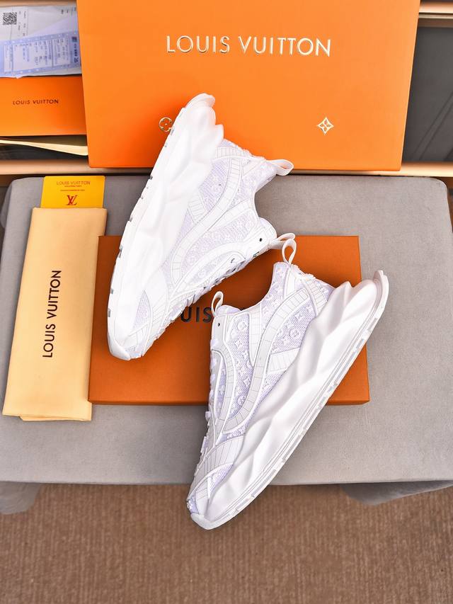 Louis Vuitton New Milan Fashion Show Collection. Featuring the iconic LV logo, exuding sophistication and a must-have for fashionistas. Imported mesh upper with high-tech epoxy resin finish, breathable cowhide lining, genuine leather insole, and specially supplied foam outsole. Sizes 38-44, 45, 46. Custom orders accepted.