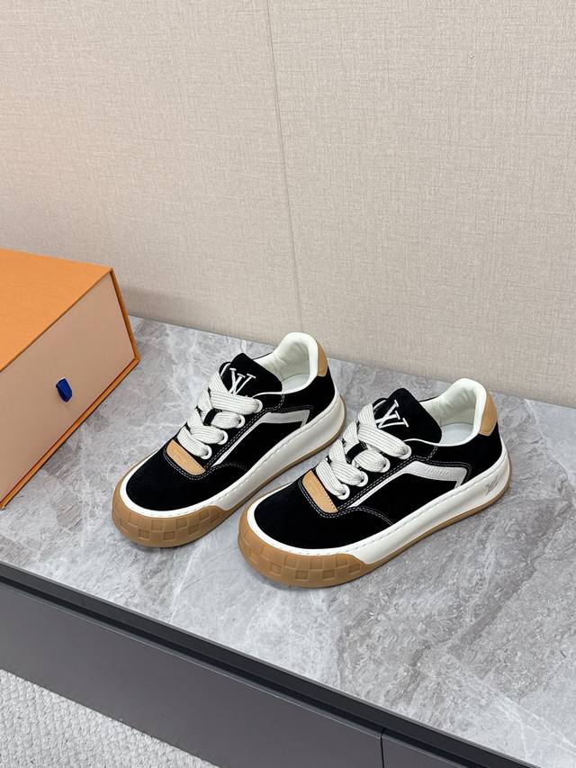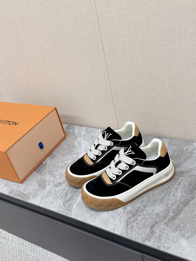 Louis Vuitton's latest couple's biscuit shoes/casual shoes. Highly recommended by celebrities and influencers. Completely replicated. Extremely comfortable to wear. Luxurious materials and exquisite workmanship. The midsole features "Made in Europe" lettering. The upper is made of imported Italian suede, with the brand logo and signature on the side. Features the latest latex insole and mesh lining for ultimate comfort. Original factory-supplied two-tone TPU outsole. Goodyear welt construction. Size: Women's 35-40, Men's 39-45.