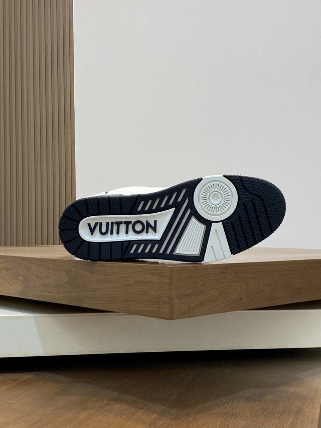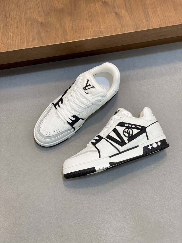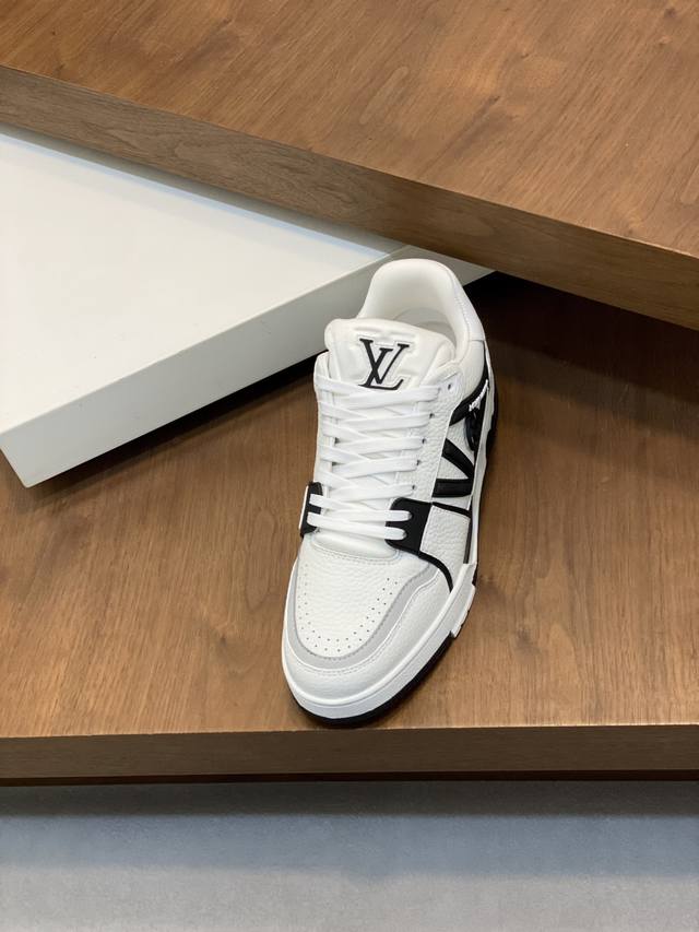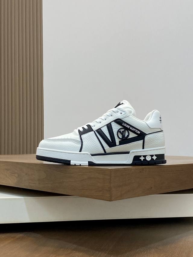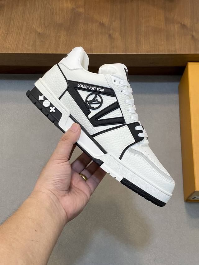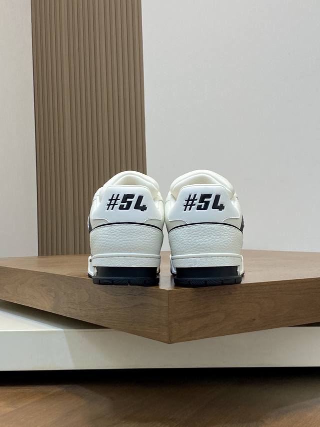 Lujia's new men's Trainer sneakers are crafted from soft, grained calfskin in a pure, pure hue. The brand, founded in 1854, features the designer's handwritten logo on one side. Designed by Virgil Abloh himself, these shoes are truly memorable. The new Louis Vuitton Trainer Sneaker Low is a versatile, casual, athletic basketball sneaker. Sizes: 39-44, 38, 45, and custom-made.