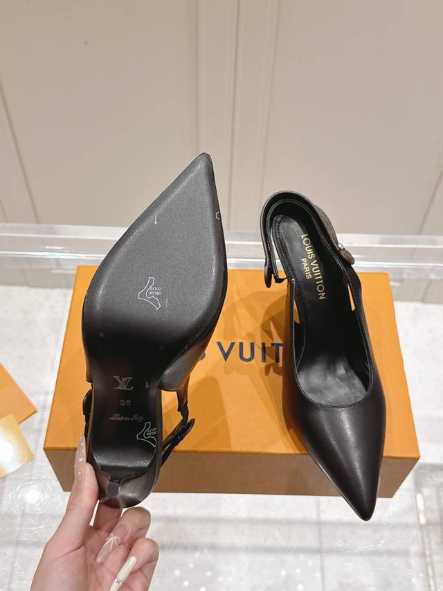 LV 2025 Fall/Winter runway backless shoes are finally here! New arrival simultaneously at boutiques and the official website. Classic pointed toe design. 9cm kitten heel for stable walking and an air of sophistication. 1:1 replica of the original last, instantly elongating your legs. Imported calfskin upper for a delicate and soft feel. Italian genuine leather sole and cowhide lining. Every detail exudes luxury. Minimalist design yet inherently sophisticated. Suitable for everyone, making you look like a wealthy lady. A must-have, these shoes are effortlessly stylish and slimming. #LVNewArrival #DesignerShoes #HighEndOutfit #ClassicPointedToeShoes Upper: Imported calfskin Lining: Premium cowhide Insole: Imported cowhide Sole: Italian genuine leather Heel: 9cm leather-covered heel Sizes: 35-41, 40.41 (custom orders are non-refundable/non-exchangeable)
