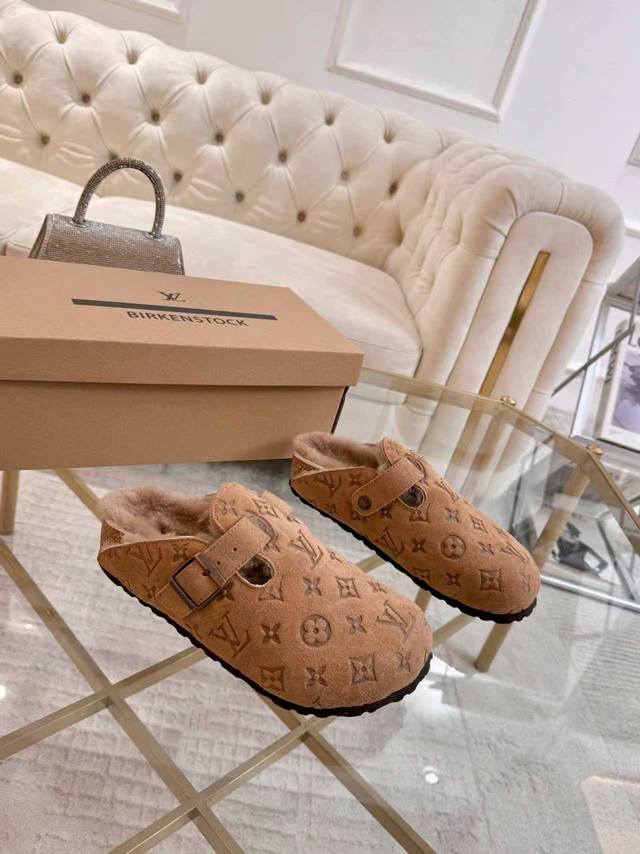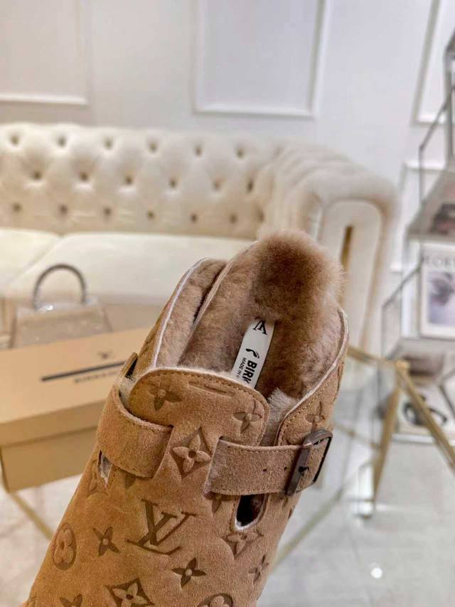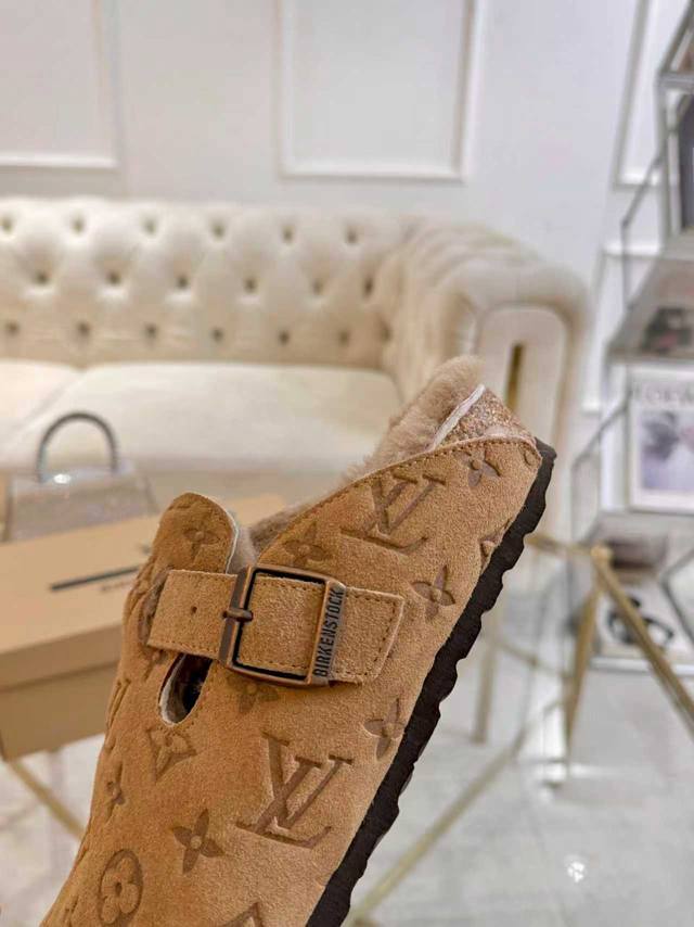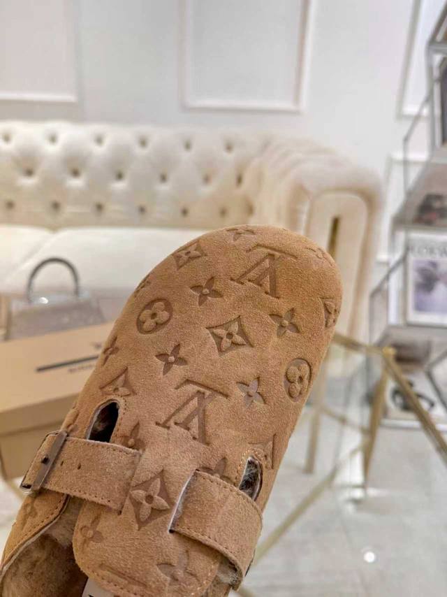 These classic LV Birkenstock slippers are a high-quality replica, meticulously crafted with luxurious details.