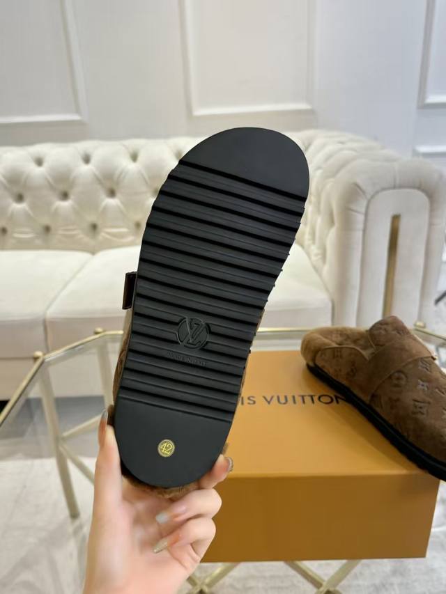 LV Couple Wool Slippers | Exuding Luxury, Every Footprint is Luxurious! We've achieved the ultimate high-quality replica of these classic LV closed-toe slippers! Key advantages are clear: Original jacquard weave + suede upper, delicate texture, instantly exuding luxury; 160% pure wool lining, wearing them barefoot feels like walking on clouds, soft, skin-friendly, and breathable; Non-slip rubber sole + 3D closed-toe design, super stable walking, stylish and practical! A must-have for detail-oriented individuals: The classic LV monogram pattern and belt buckle exude understated luxury. Perfect for couples on a date or outings with friends, these shoes will make you the center of attention. Effortlessly styled: Pair with jeans and a sweater for a relaxed, casual look; or with a coat and a skirt for a sophisticated and elegant feel. One pair of shoes can handle multiple styles, effortlessly chic. #LVSlippers #CoupleOutfits #HighEndCustomization #QualityShoesRecommendation Material: Classic jacquard fabric Lining: Imported wool Sole: Original rubber sole Sizes: Women's 35-41, Men's 38-46