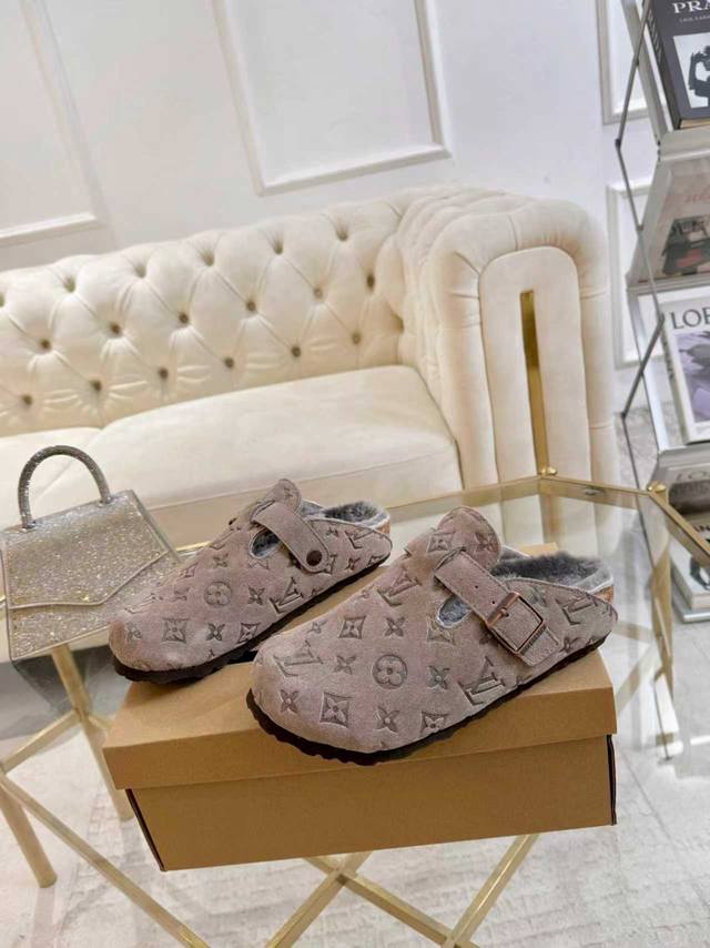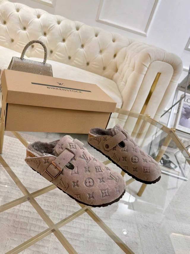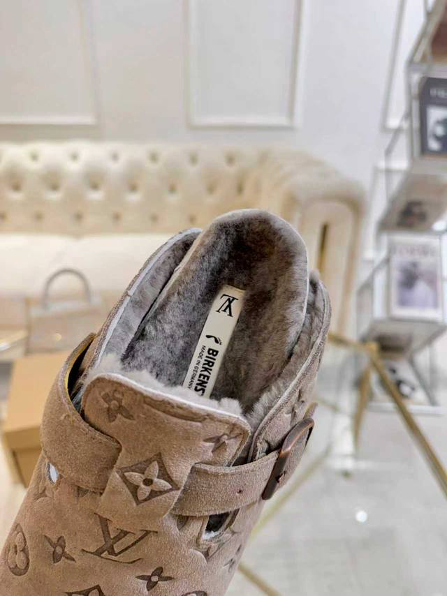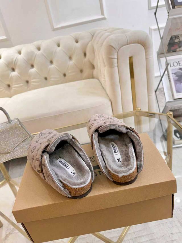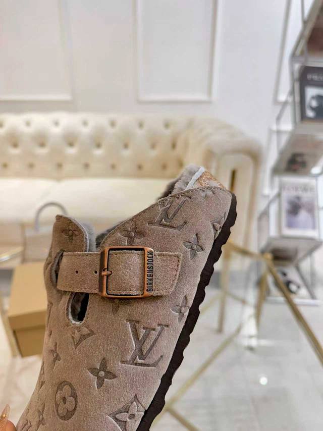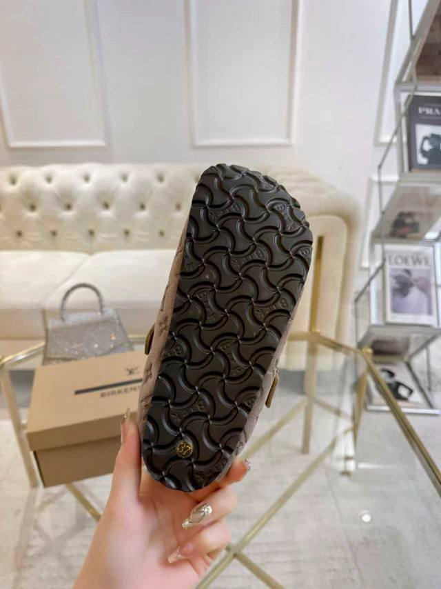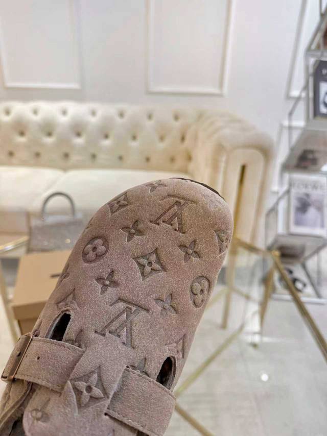 These classic LV Birkenstock slippers are a high-quality replica, meticulously crafted with luxurious details.