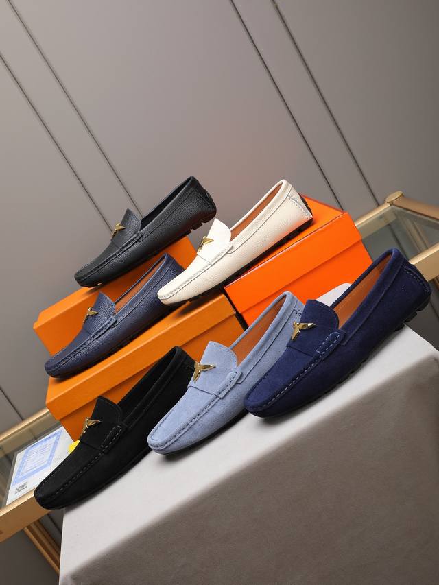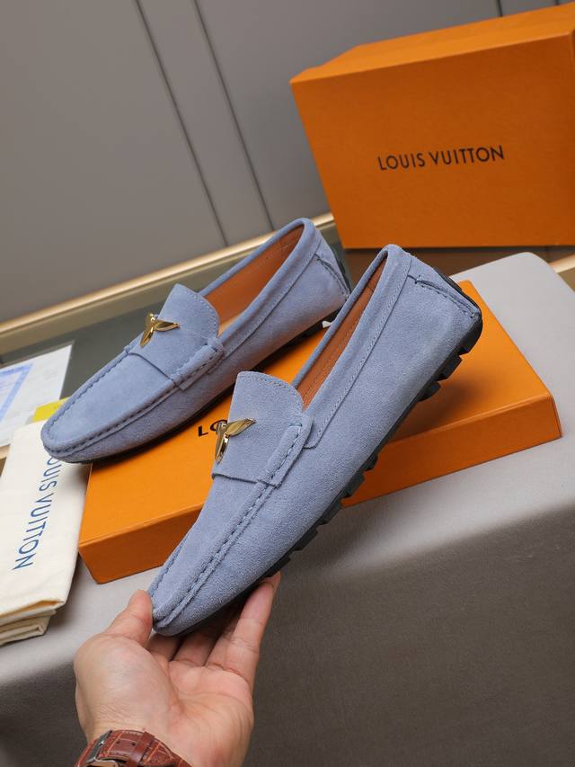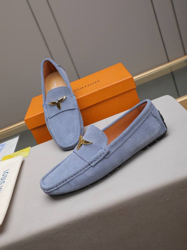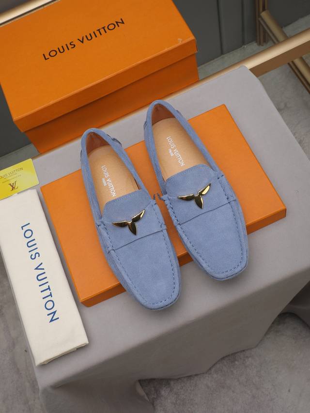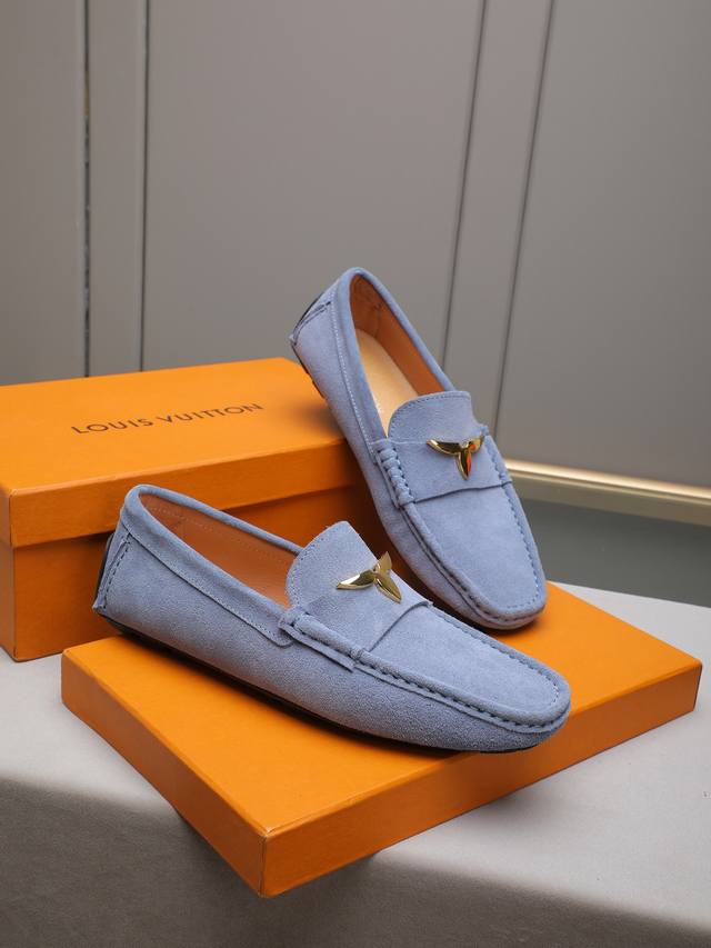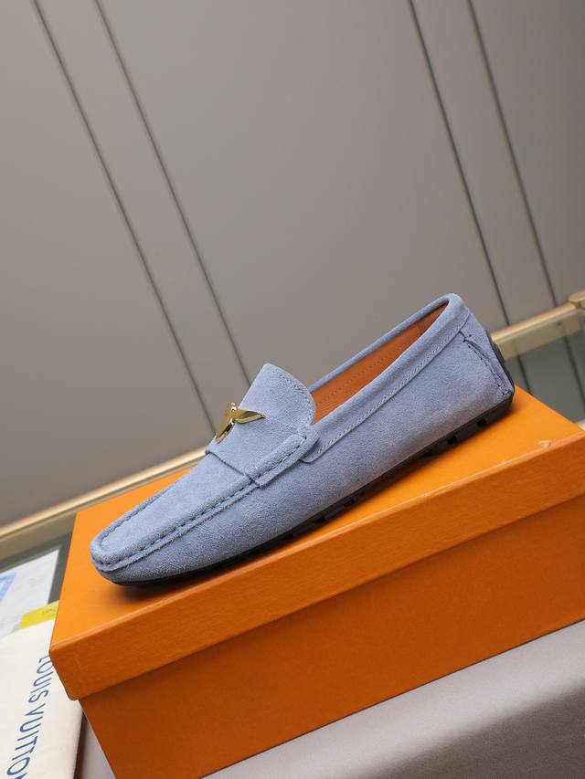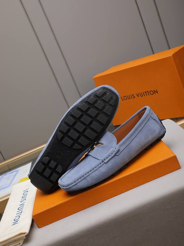 Lv Driving Shoes: Exuding charm and luxurious style, these gentlemanly shoes feature an imported cowhide leather upper, water-dyed sheepskin lining, rubber outsole, and a lasted, stitched sole that will never come unglued. The entire pair is fashionable and casual yet sophisticated; standard sizes 38-44 and 45 available. Custom orders are welcome in multiple colors.