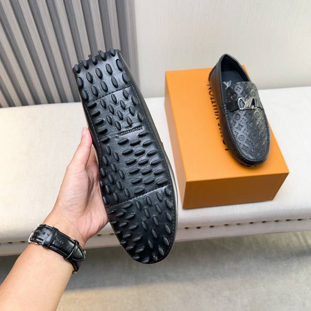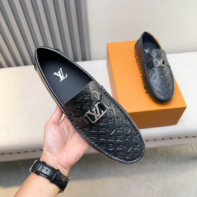 Lv High-end quality driving shoes, imported lychee grain, water-dyed cowhide lining, original rubber outsole. Size: 38-45.
