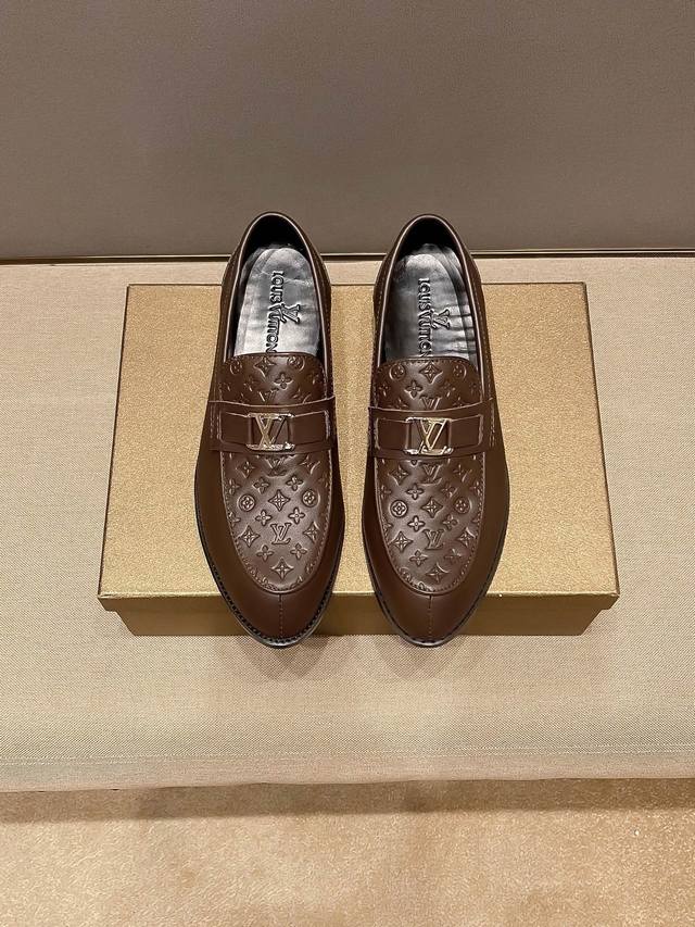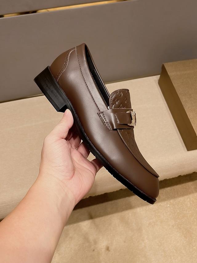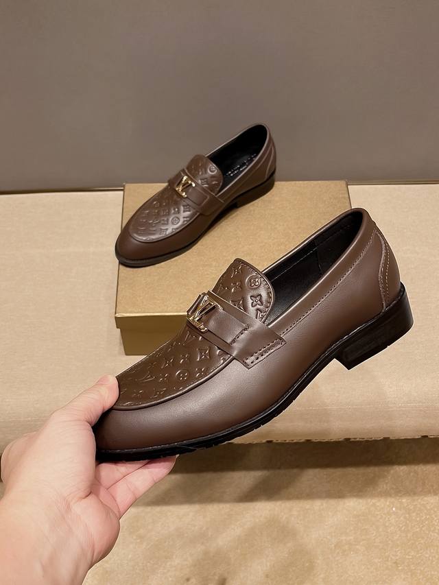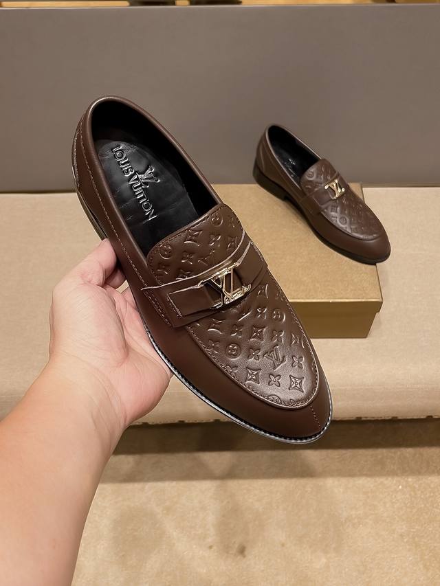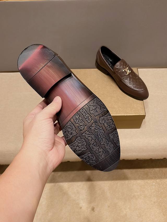 LV Louis Vuitton official flagship store new business casual slip-on dress shoes, original cowhide upper, a favorite among men, comfortable and breathable pure cowhide lining, original imported wear-resistant rubber sole, exquisite and elegant, a must-have for men, using exquisite craftsmanship, the upper is beautiful and luxurious, the exquisite and simple upper shows the brand's understated elegance, suitable for all seasons, whether focused on work, spending leisure time with family, or experiencing an elegant lifestyle in the city or countryside, this series can show true masculine charm. Strive] Standard size 37