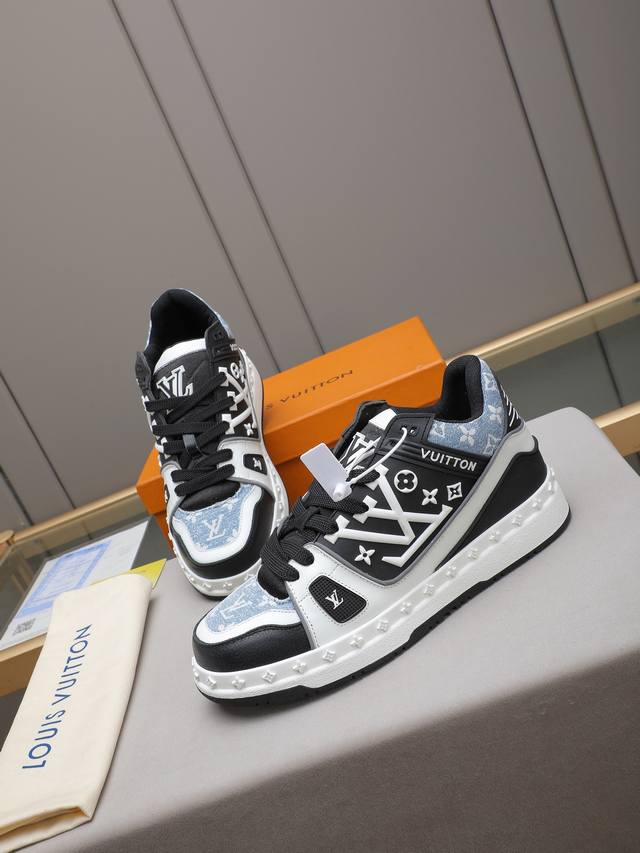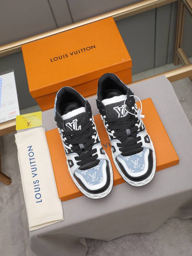 Lv style is novel and fashionable, the upper is made of imported cowhide, and the design is super trendy! It's eye-catching! The leather is soft, delicate and glossy, showcasing the ultimate pure handcraftsmanship. The tongue features the LV logo, and the mesh lining is soft, comfortable and breathable! Size: 38-44 45 (Custom sizes available)