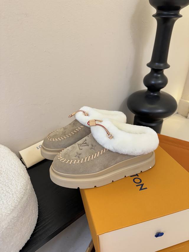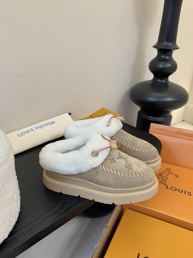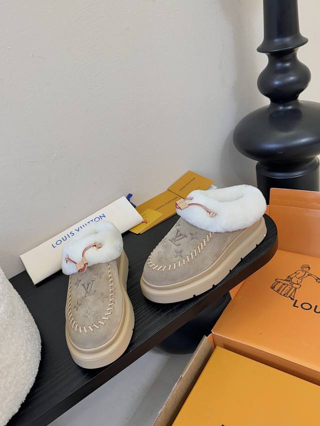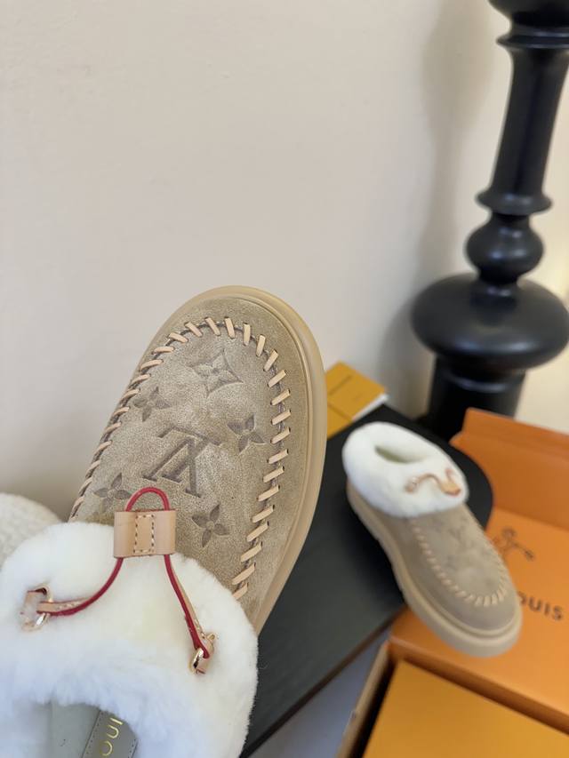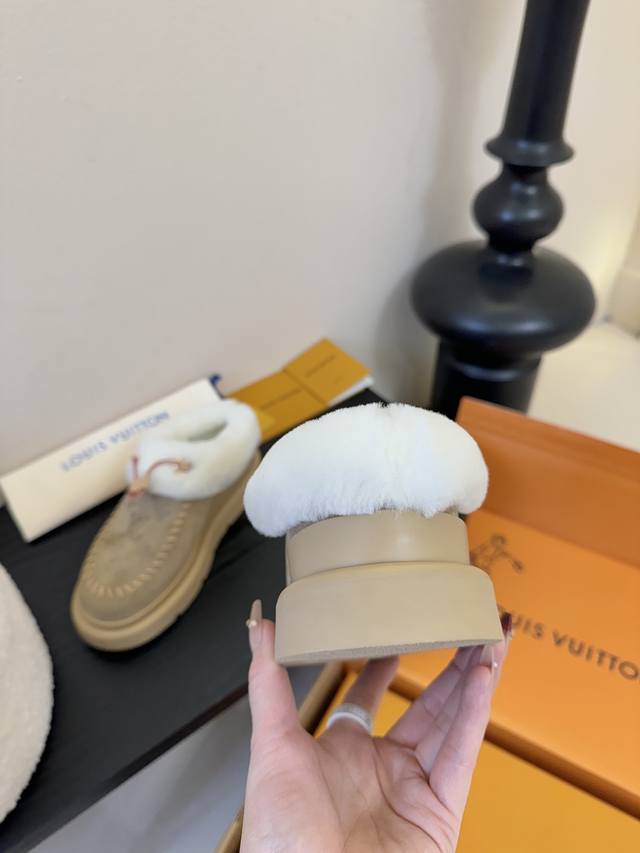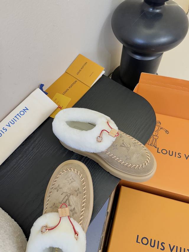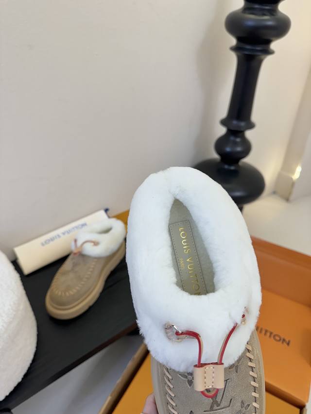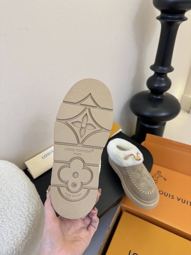 Lv Top-tier Louis Vuitton Archlight Classic Fuzzy Ski Series Mary Jane Fuzzy Single Shoes/Cotton Shoes. These might not even be available in the future. They're very high-quality and lightweight, a safe bet, and quite stylish. I especially love the khaki color! I didn't get a small size for a close-fitting base layer, so I'll have to wait for it to arrive. The same style also includes a knitted Lei Feng hat, but I arrived late and didn't see it at all. Material: Original material. Lining: Imported wool. Sole: Original material. Sizes: 35-42. Sizes 40, 41, and 42 are custom-made, no returns or exchanges.