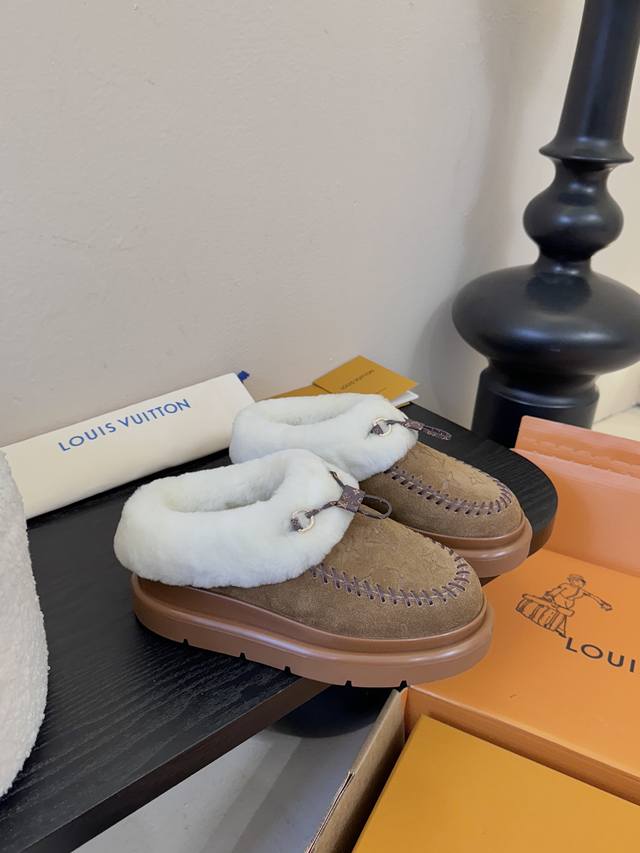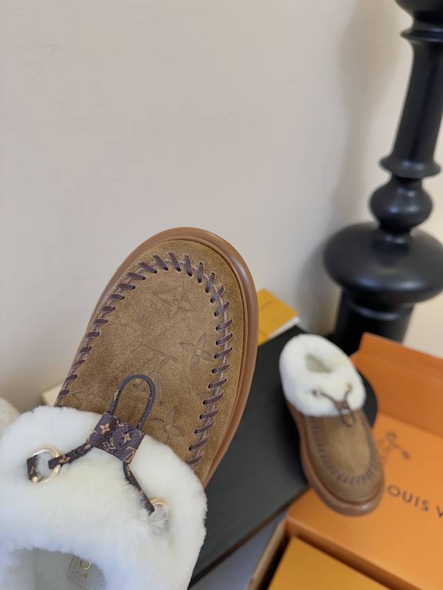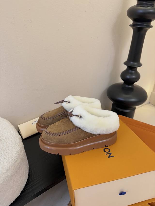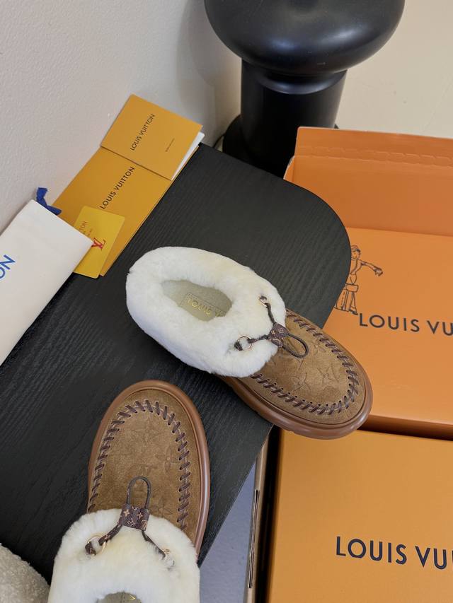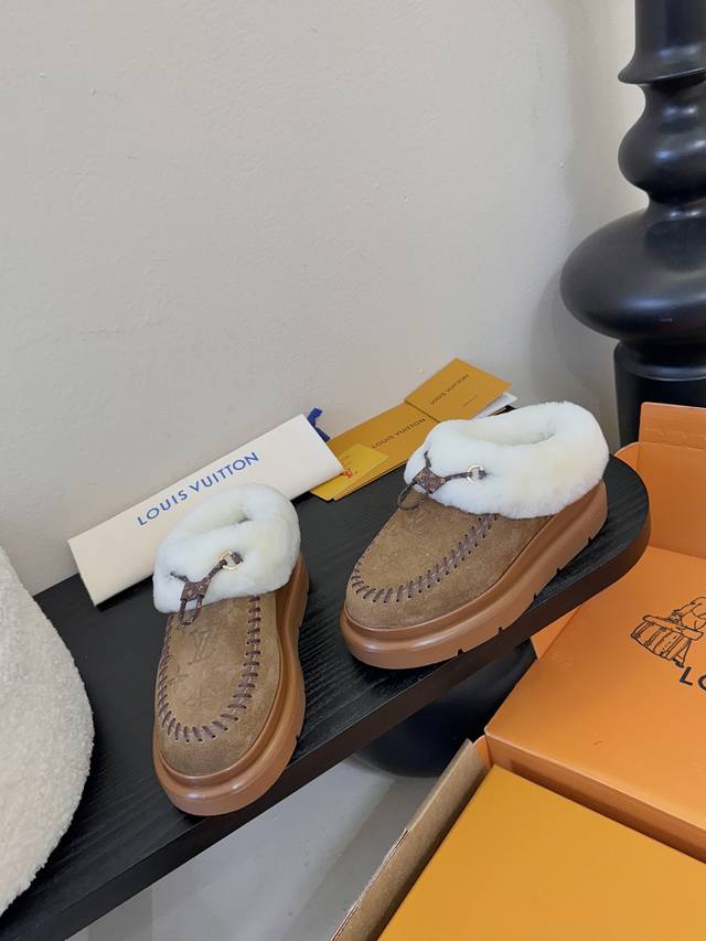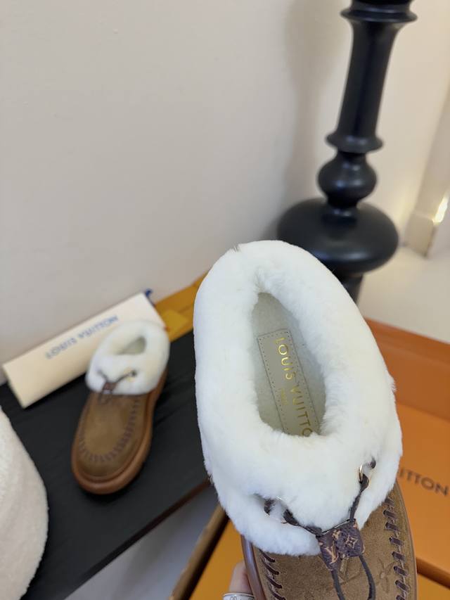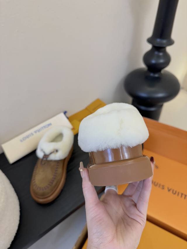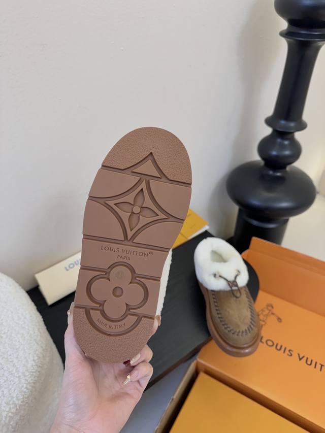 Lv Top-tier Louis Vuitton Archlight Classic Fuzzy Ski Series Mary Jane Fuzzy Single Shoes/Cotton Shoes. These might not even be available in the future. They're very high-quality and lightweight, a safe bet, and quite stylish. I especially love the khaki color! I didn't get a small size for a close-fitting base layer, so I'll have to wait for it to arrive. The same style also includes a knitted Lei Feng hat, but I arrived late and didn't see it at all. Material: Original. Lining: Imported wool. Sole: Original. Sizes: 35-42. Sizes 40, 41, and 42 are custom-made, no returns or exchanges.