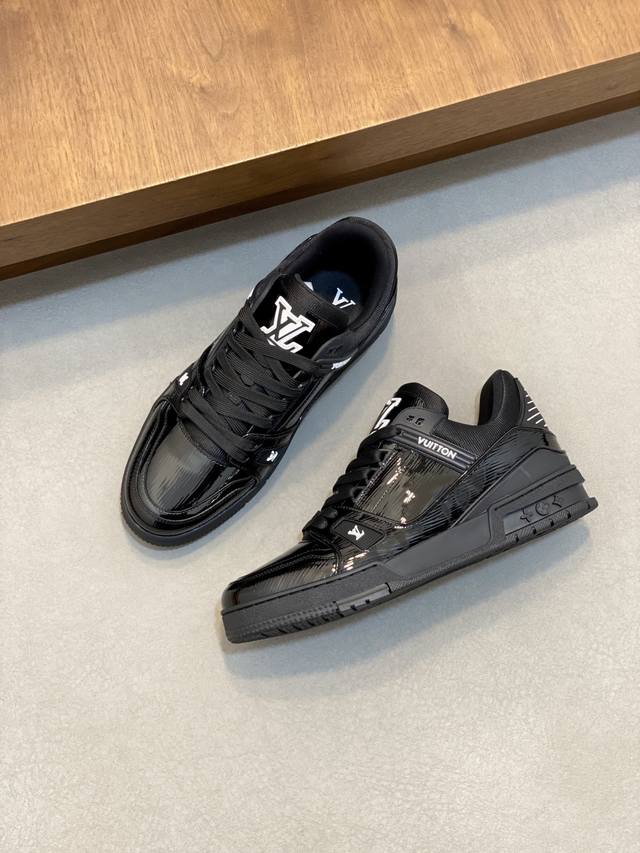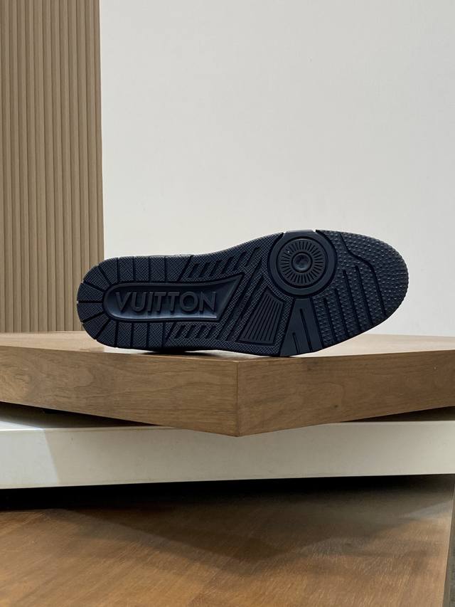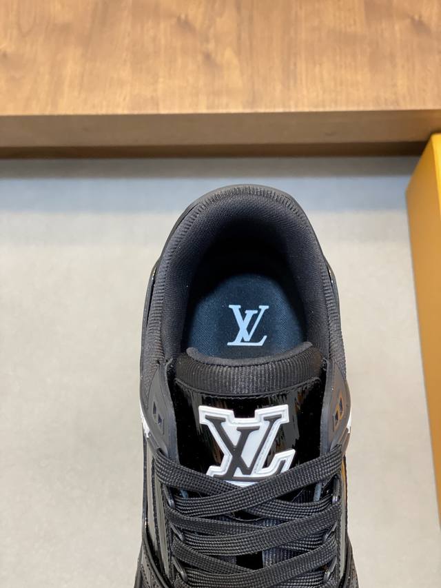 LV Vuitton Men's New Trainer Series Sneakers Ddd This LV Trainer sneaker features Monogram denim with a cloud-like effect and cowhide leather trim, a fresh interpretation of Virgil Abloh's retro basketball shoe. The intricate upper and rich details highlight the series identity, with handwritten Louis Vuitton logos and Monogram flowers adorning the sides and outsole. The tongue features the LV logo, the side features the Vuitton logo, the heel features a #54 logo, and the shoe has a fabric lining and continues the comfort provided by the innovative gel outsole. The comfort of Louis Vuitton shoes needs no introduction. Comes with full packaging! Ddd Sizes: 39-40-41-42-43-44 38 45 46 Custom orders are possible but non-refundable. Standard dress shoe sizes DDD Ddd