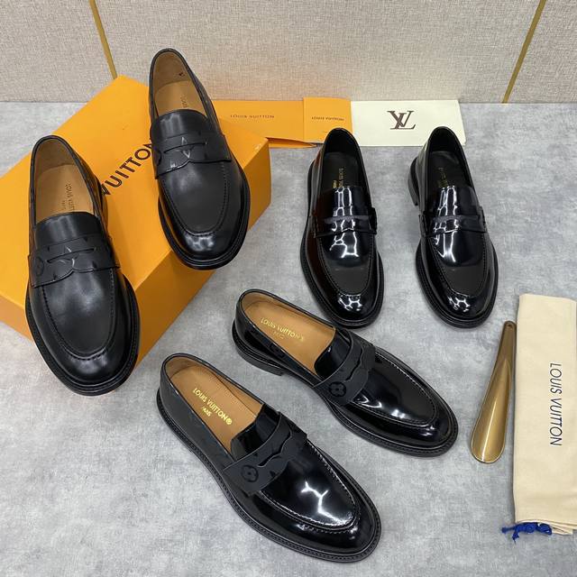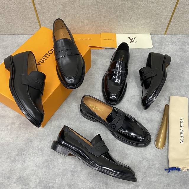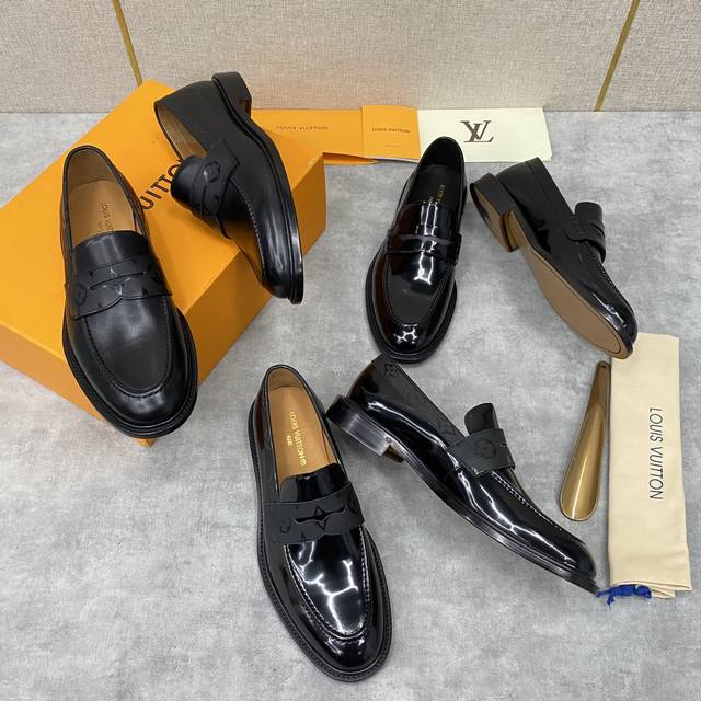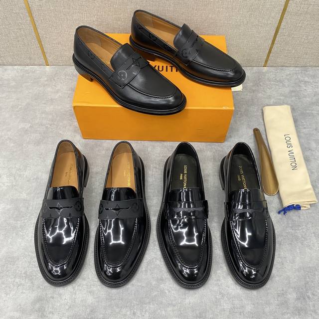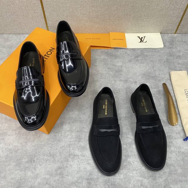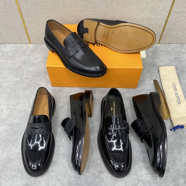 New Saint Germain Loafers, official price RMB 0.50. These loafers are crafted from imported split-edge glossy leather, high-gloss suede, and soft waxed cowhide, creating an elegant silhouette. The collar and straps are subtly adorned with the Monogram pattern. The water-dyed cowhide lining, crafted using traditional Sacchetto techniques, makes the shoe lightweight and agile. Combined with a fine Italian leather outsole, it showcases Louis Vuitton's exquisite shoemaking skills. Standard shoe sizes: 39-44. (38, 45, 46 are available for custom orders.)