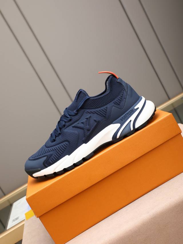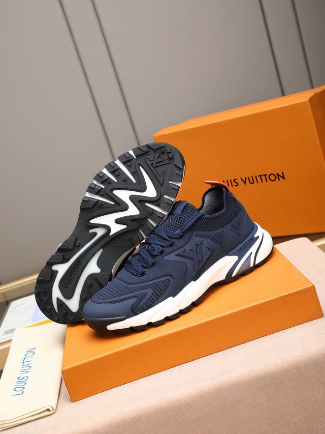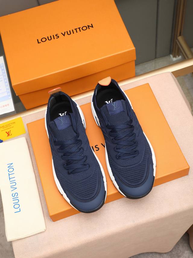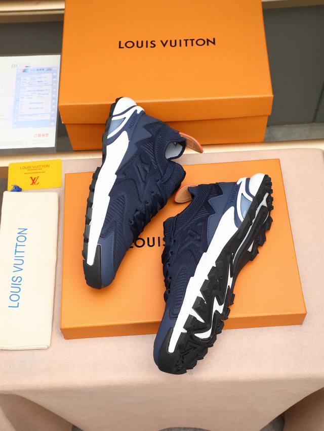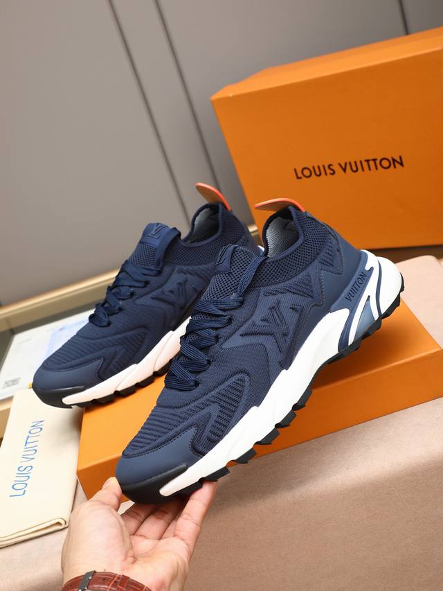 p LV Louis Vuitton Runner Tatic series thick-soled casual sneakers. Originally purchased, developed, and crafted, these LV Runner Tatic sneakers incorporate flyknit fabric, inspired by traditional hiking boots. The lettering LV is emblazoned on one side, along with the Louis Vuitton logo. A lightweight, durable rubber outsole completes the look. Delivered in exquisite packaging. Fabric: Original imported custom flyknit fabric. Lining: Original custom breathable mesh. Sole: Original molded, non-slip rubber combination. Sole thickness: 4cm. Sizes: Men's sizes 38-44, 45, custom-made.