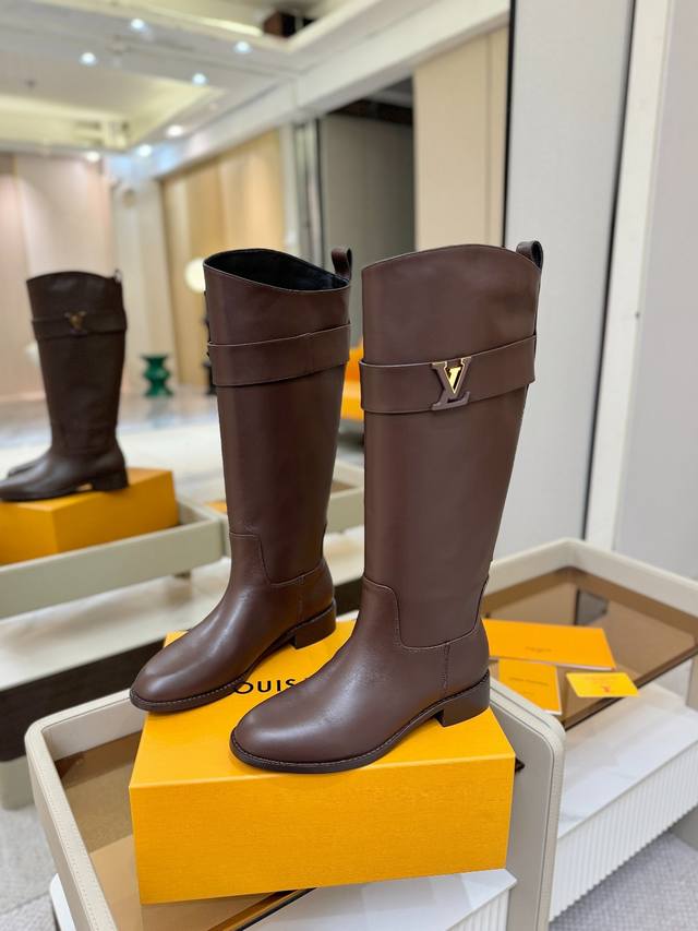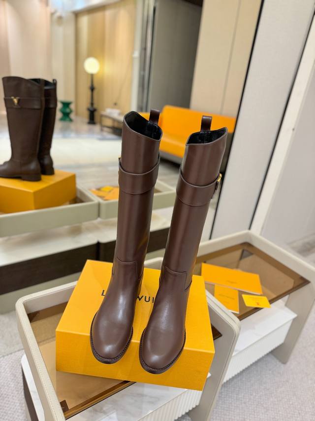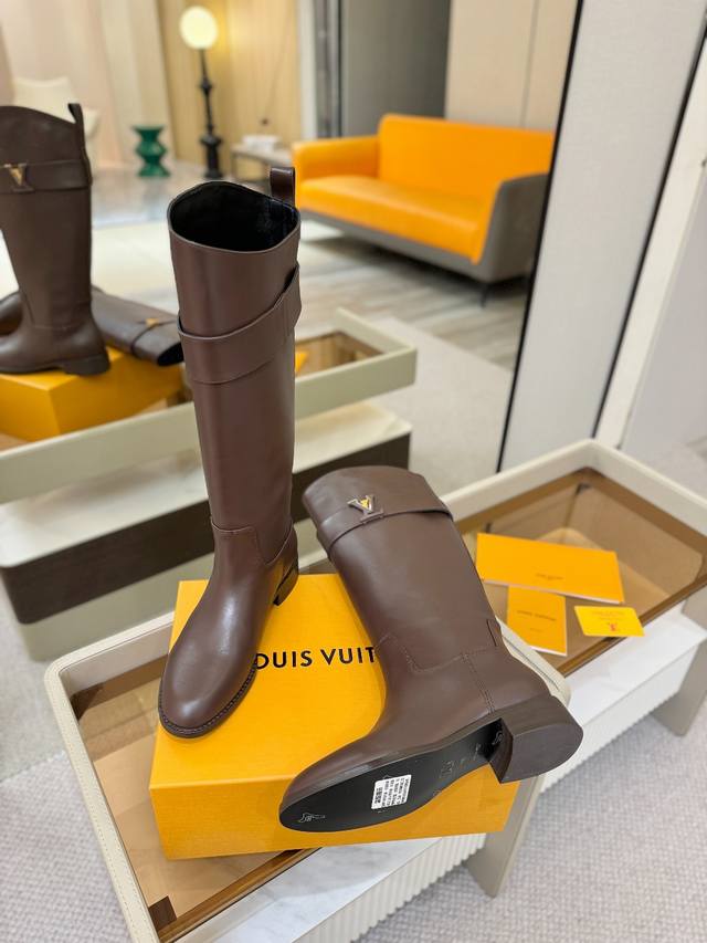 Price p: Louis Vuitton Fall/Winter Metal Buckle Equestrian Boots, Genuine Leather Sole, Genuine Leather Welt, Leather-Wrapped Heel. Exclusive New Top-Tier Version from Paris. Superb Quality. Original Design, Original Mold, Original Buckle Mold with Original Logo. Super Stylish! High-end and classy at first glance, making you swoon. Super good-looking! Material Description: Outsole: Italian Genuine Leather Outsole; Heel Height: 3.5cm; Colors: 4 Colors; Lining: Sheepskin Lining; Upper: Cowhide; Sizes: 35-42 {Sizes 41 and 42 are non-refundable}