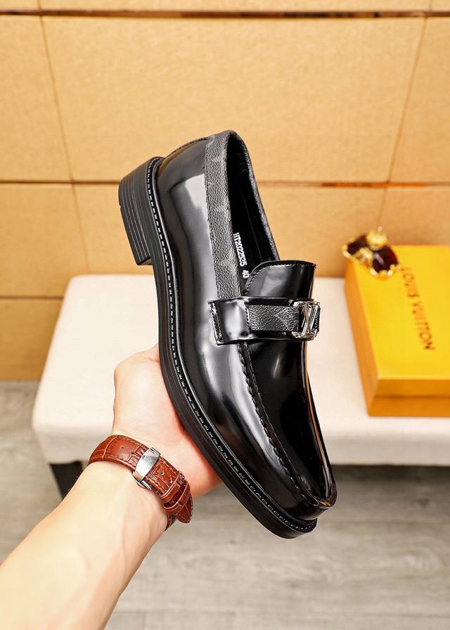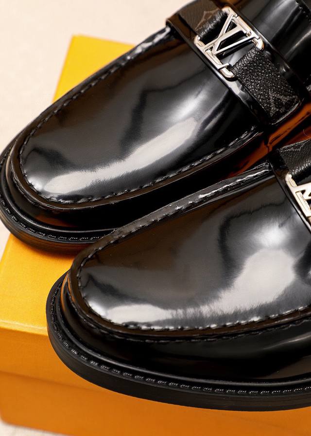 Product Brand: Louis Vuitton Casual Leather Shoes True to Size: 38-44, 45. Custom Made Available Materials: Selected top-grain calfskin upper with luxurious hardware buckles, imported top-grain cowhide lining. Strong three-dimensional visual effect, rubber outsole. Colors: 1 color available.