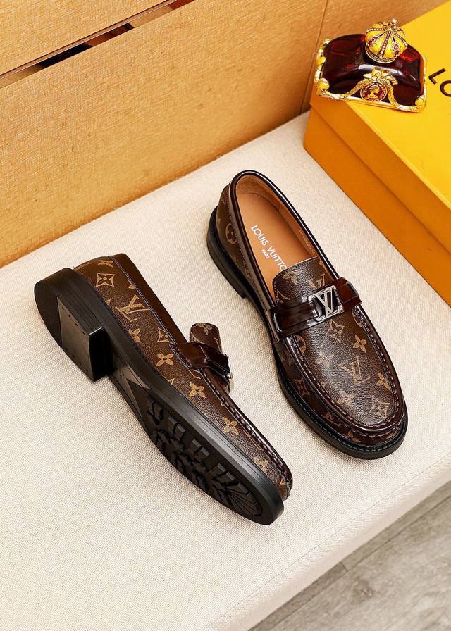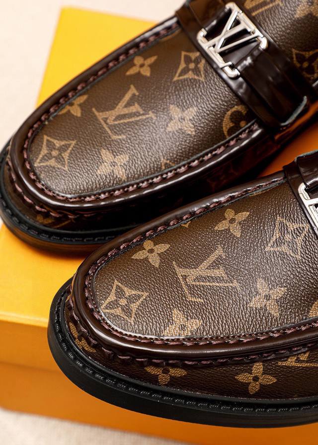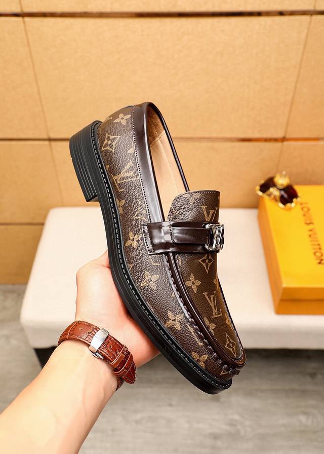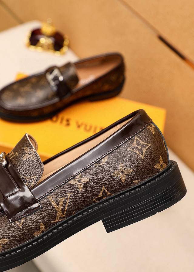 Product Brand: Louis Vuitton Casual Leather Shoes True to Size: 38-44, 45 (Custom Sizes Available) Materials: Selected top-grain monogram calfskin upper with luxurious hardware buckles, imported top-grain cowhide lining. Strong three-dimensional visual effect, rubber outsole. Colors: 2 colors available.