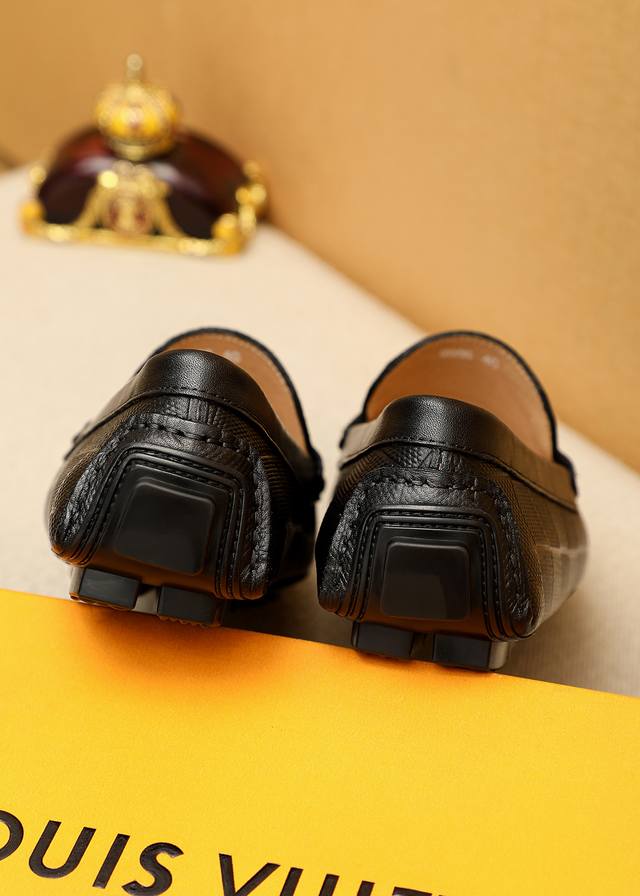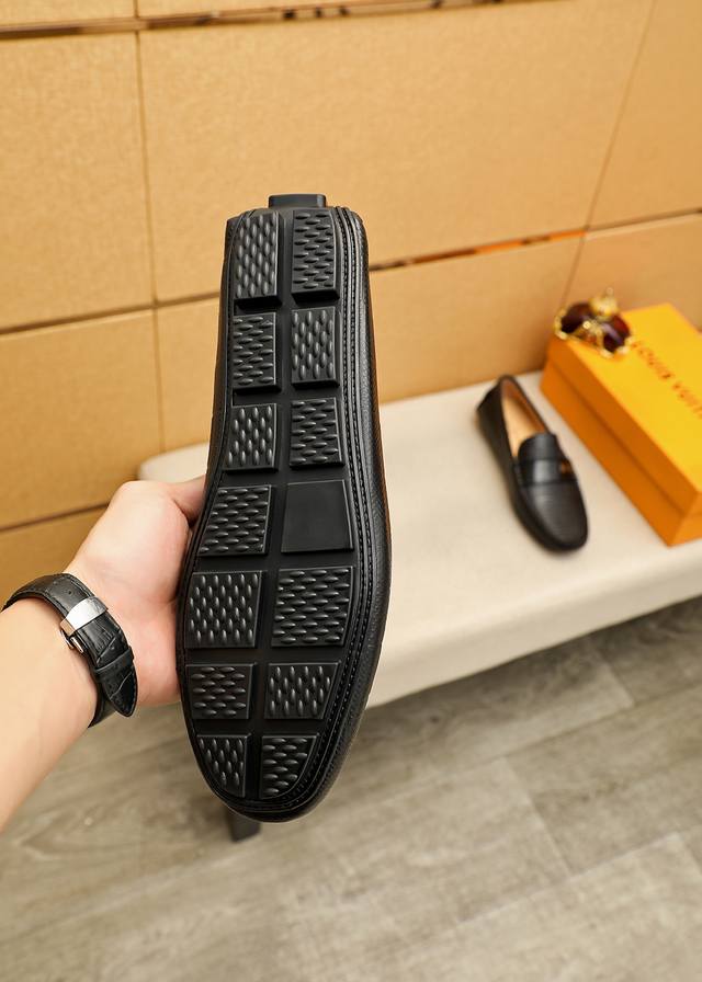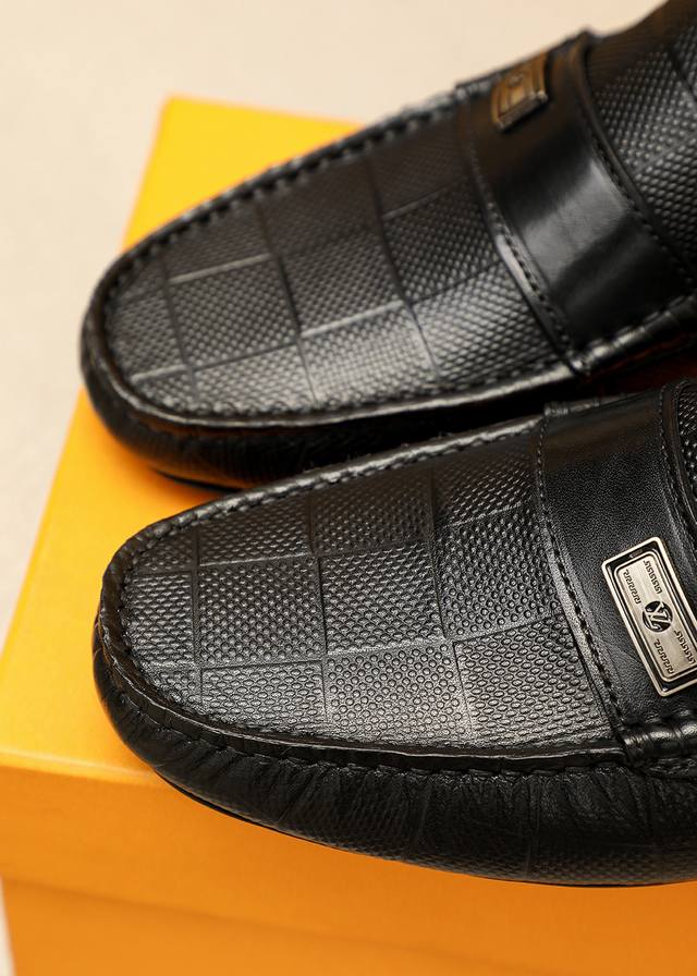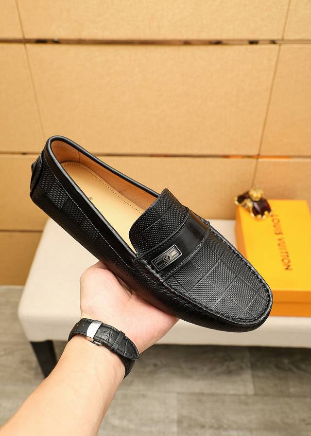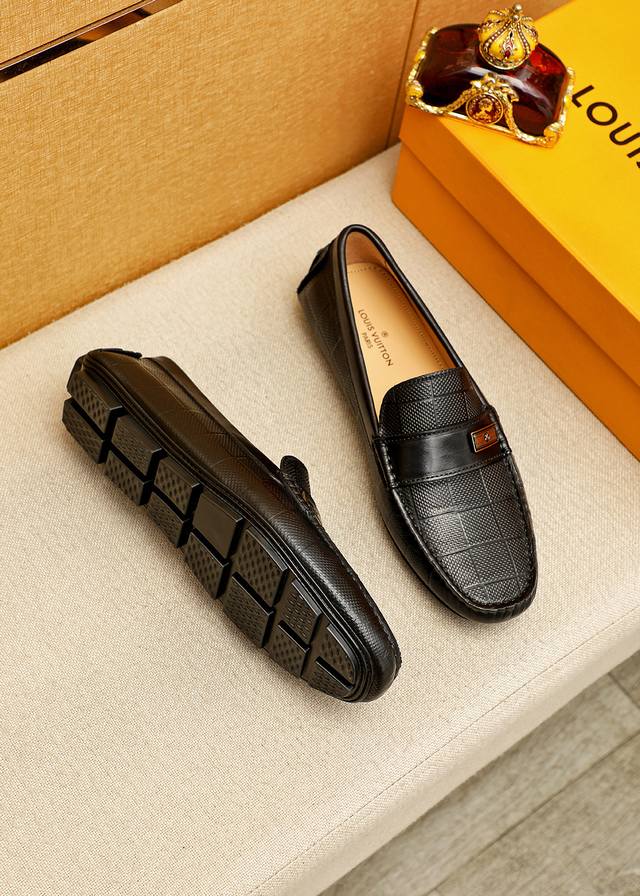 Product Brand: Louis Vuitton Loafers True to Size: 38-44, 45-46 (Made to Order) Materials: Selected top-grain calfskin embossed upper + classic hardware buckles, imported pigskin lining. Strong three-dimensional visual effect, rubber outsole. Colors: 1 color available.