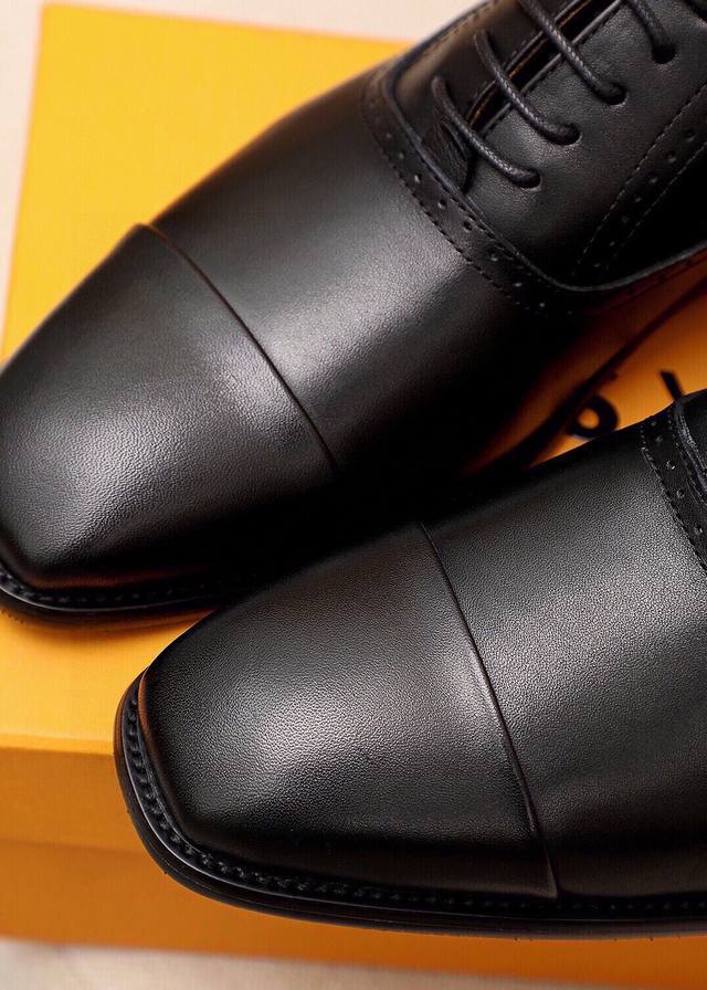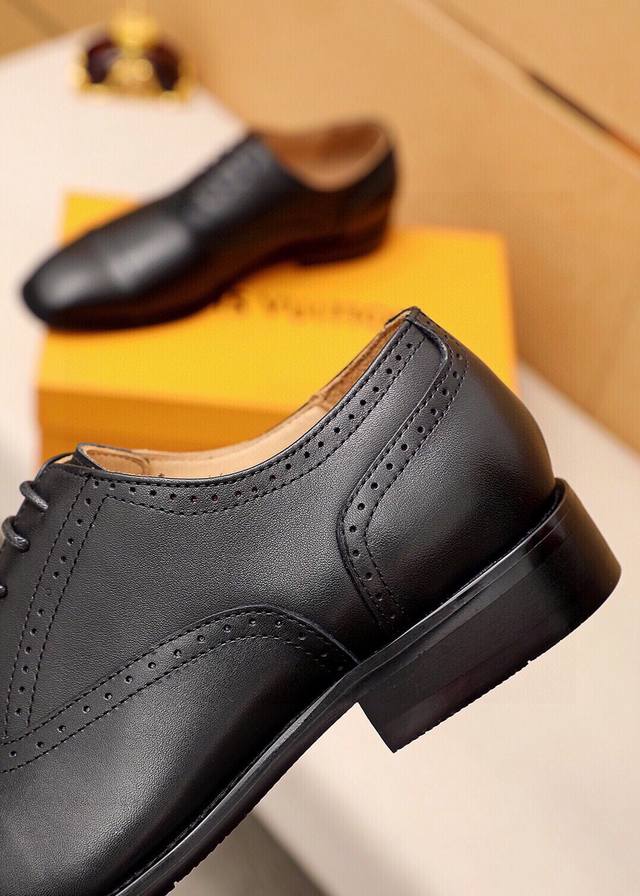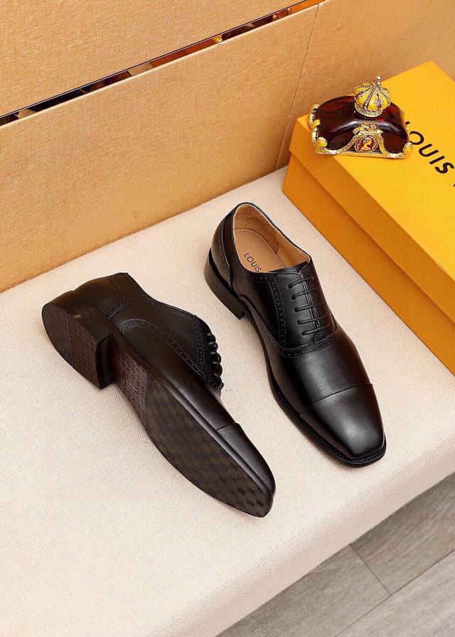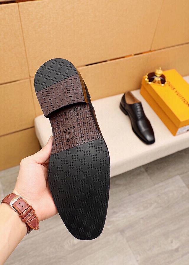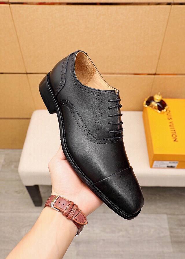 Product Trademark: Louis Vuitton Business Leather Shoes True to Size: 38-44, 45, 46, 47 (Custom Made) Materials: Selected imported calfskin upper, imported top-grain cowhide lining. Strong three-dimensional visual effect, combined outsole. Colors: 2 colors available.