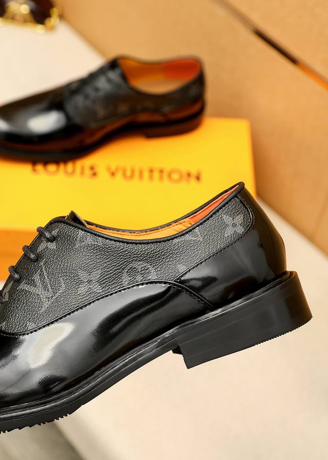 Product Trademark: Louis Vuitton Business Leather Shoes DDD True to Size: 39-44, 38.45 (Custom Made) DDD Product Materials: Selected imported top-grain split cowhide upper, imported top-grain cowhide lining. Strong three-dimensional visual effect, original outsole DDD Colors: 1 color available DDD