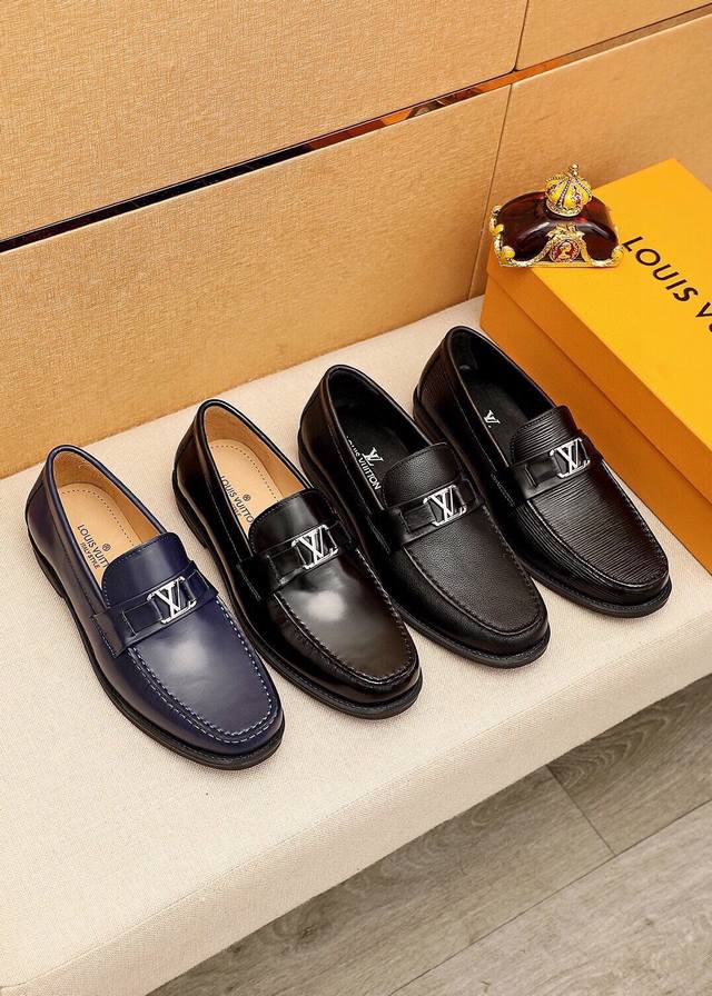 Product Trademark: Louis Vuitton Casual Leather Shoes DDD True Sizes: 38-44, 45 (Custom Made) DDD Product Materials: Selected imported top-grain split cowhide upper + luxurious hardware buckles, imported top-grain cowhide lining. Strong three-dimensional visual effect, original rubber outsole DDD Colors: 1 color available DDD