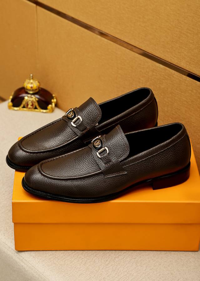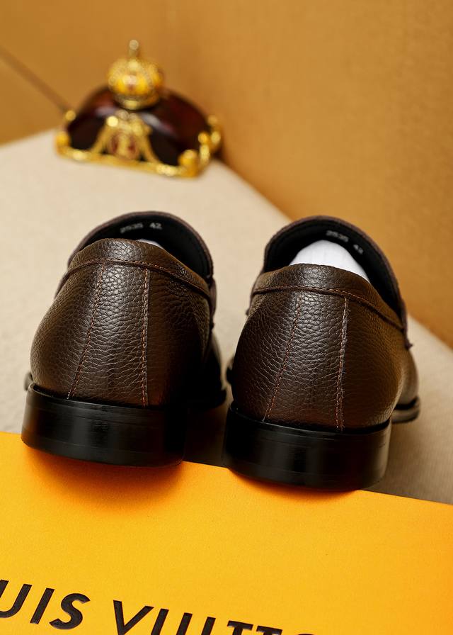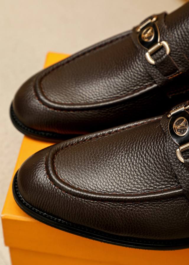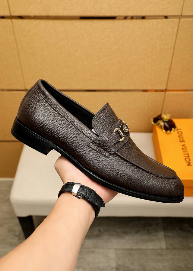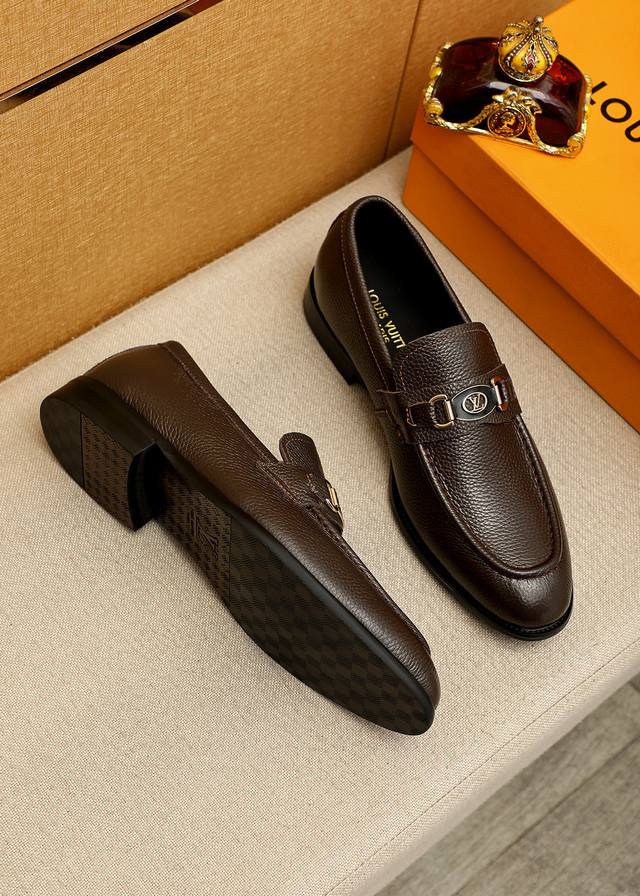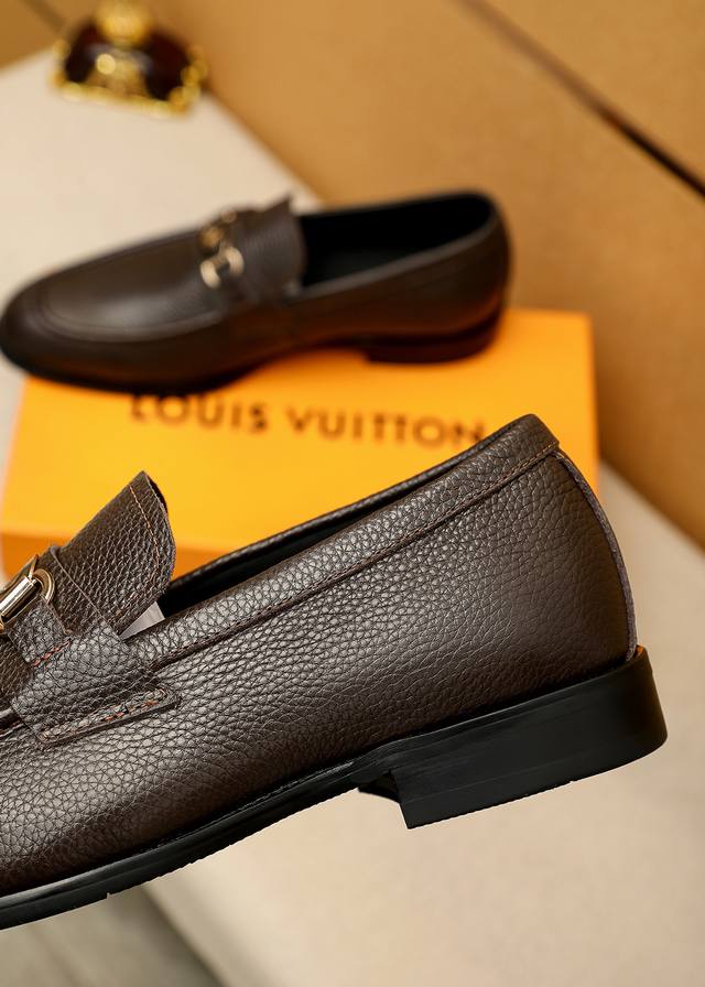 Product Trademark: Louis Vuitton Casual Leather Shoes DDD True Sizes: 38-44, 45-46 (Custom Made) DDD Product Materials: Selected imported top-grain pebbled cowhide upper + luxurious hardware buckles, imported top-grain cowhide lining. Strong three-dimensional visual effect, original outsole DDD Colors: 2 colors available DDD