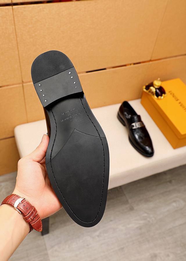 Product Trademark: Louis Vuitton Casual Leather Shoes DDD True Sizes: 39-44, 38.45 (Custom Made) DDD Product Materials: Selected imported top-grain split-edge cowhide upper with embossed design + luxurious hardware buckles, imported top-grain cowhide lining. Strong three-dimensional visual effect, original outsole DDD Colors: 1 color available DDD