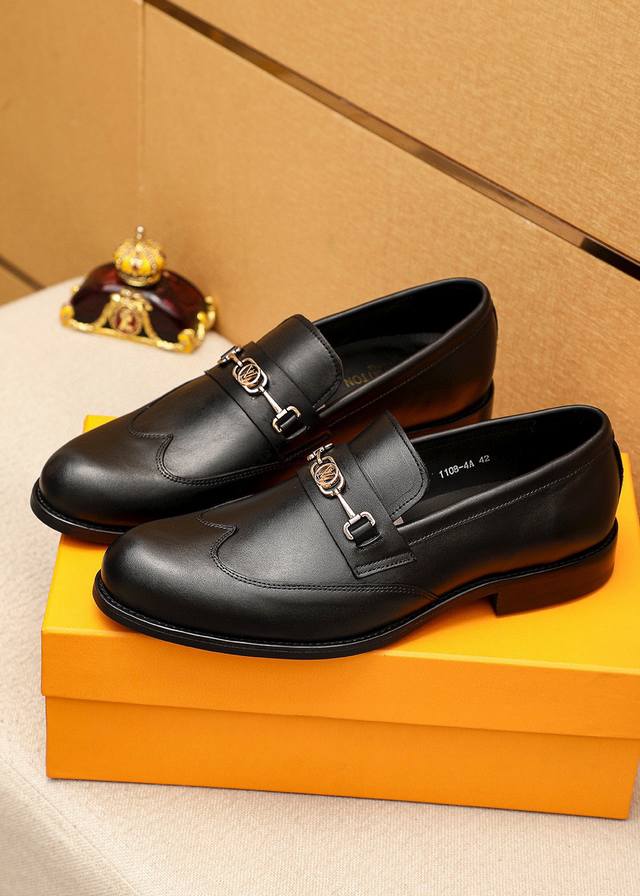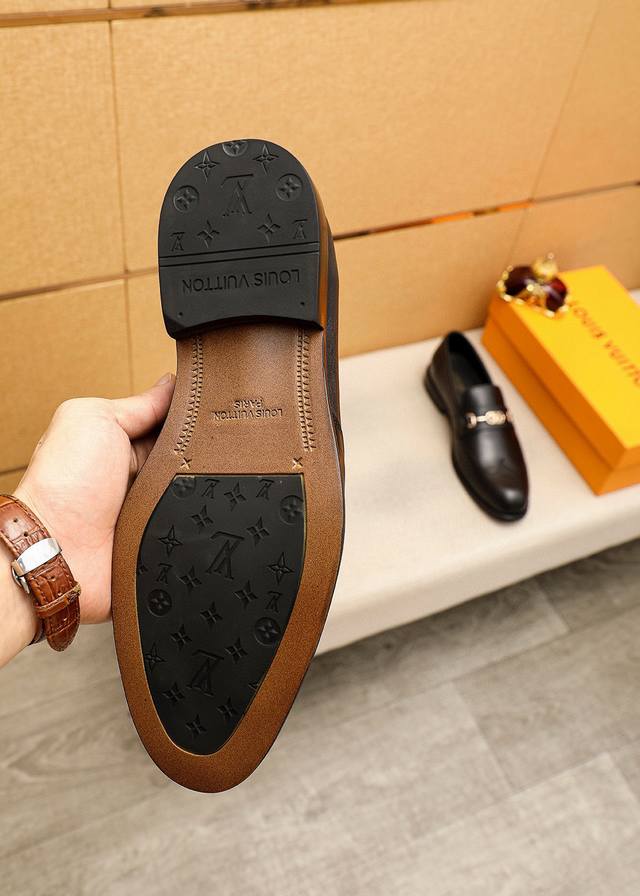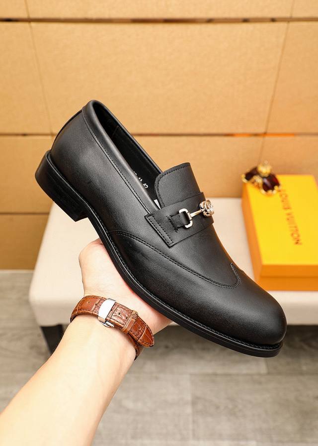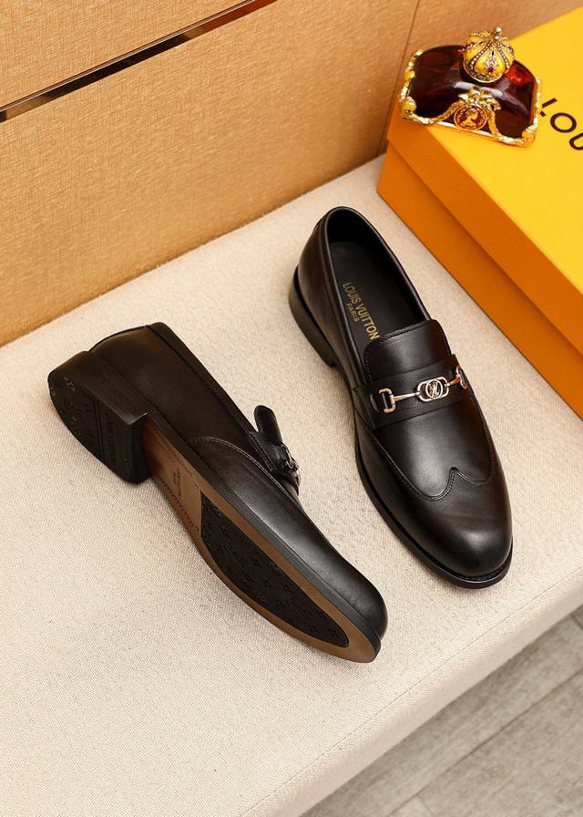 Product Trademark: Louis Vuitton Casual Leather Shoes DDD True Sizes: 39-44, 38.45 (Custom Made) DDD Product Materials: Selected imported top-grain calfskin upper + luxurious hardware buckles, imported top-grain cowhide lining. Strong three-dimensional visual effect, combination outsole DDD Colors: 2 colors available DDD