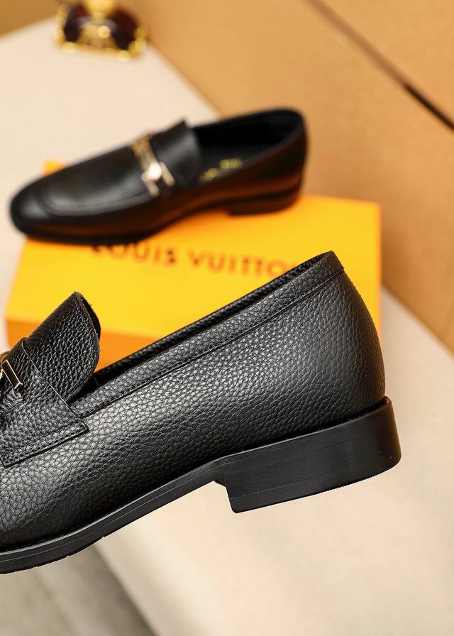 Product Trademark: Louis Vuitton Casual Leather Shoes True to Size: 38-44, 45-46 (Custom Made) Materials: Selected imported pebbled leather upper + original hardware buckles, imported top-grain leather lining. Strong three-dimensional visual effect, combined outsole. Colors: 3 colors available.