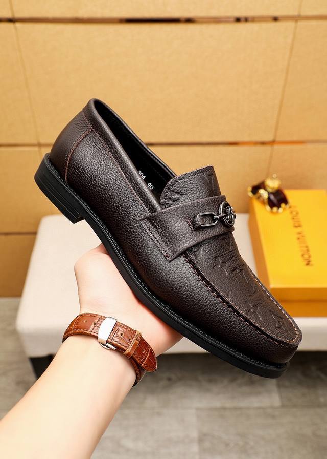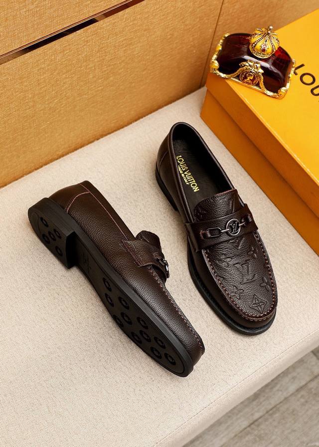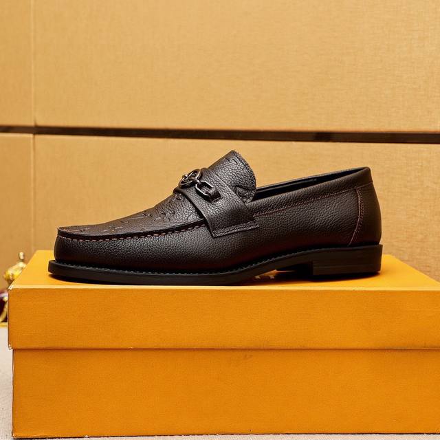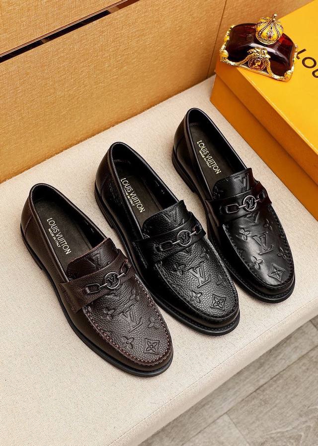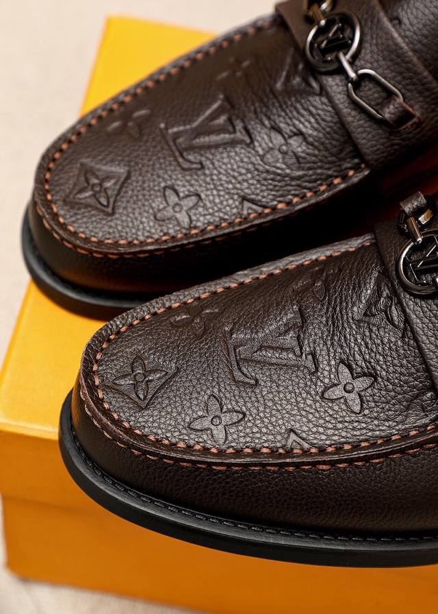 Product Trademark: Louis Vuitton Casual Leather Shoes True to Size: 38-44, 45-46 (Custom Made) Materials: Selected imported pebbled cowhide embossed upper + original hardware buckles, imported top-grain cowhide lining. Strong three-dimensional visual effect, rubber outsole. Colors: 2 colors available.