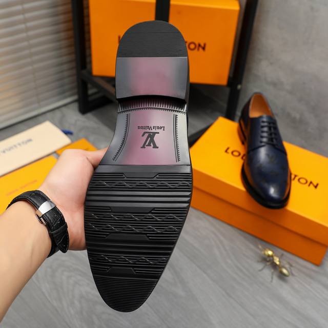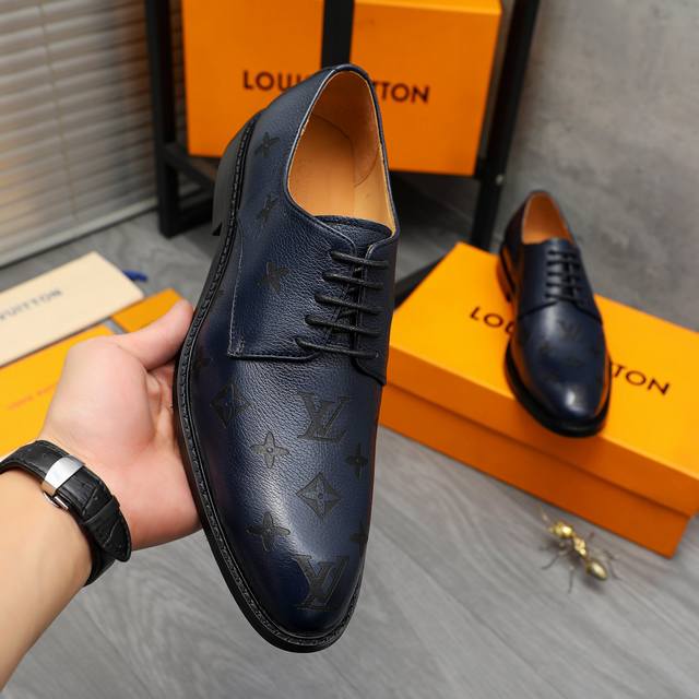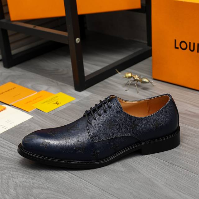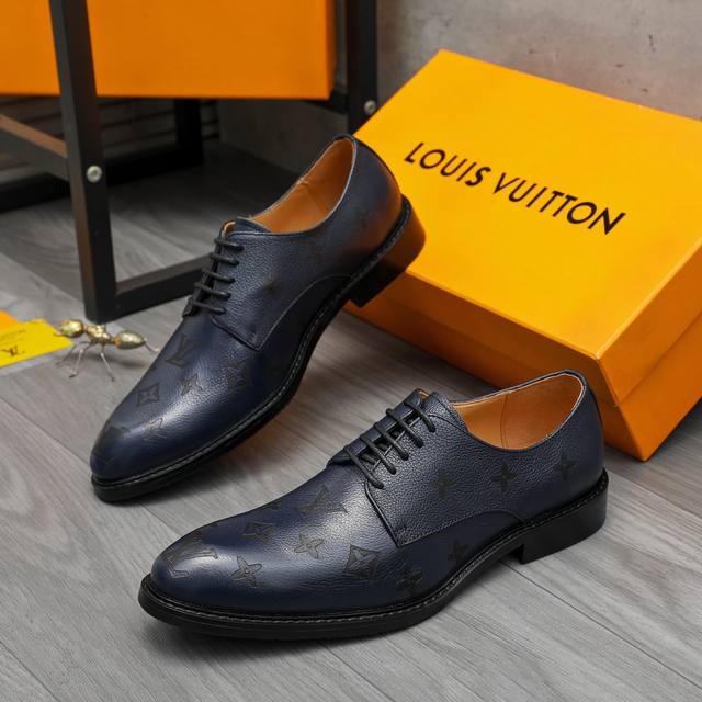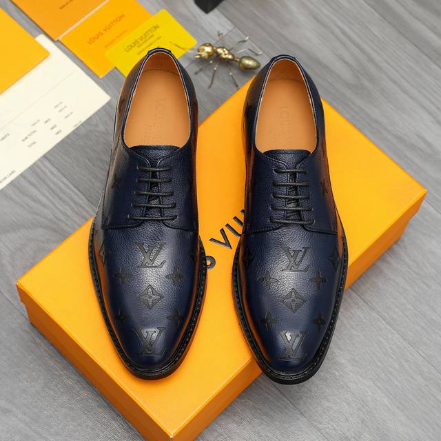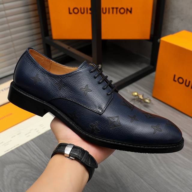 Product Trademark: Lv Louis Vuitton Business Lace-up Formal Leather Shoes True to Size: 39-44, 38.45 (Made to order, no returns or exchanges) Product Materials: Selected high-quality lychee-patterned cowhide, embossed upper, cowhide lining, original rubber outsole