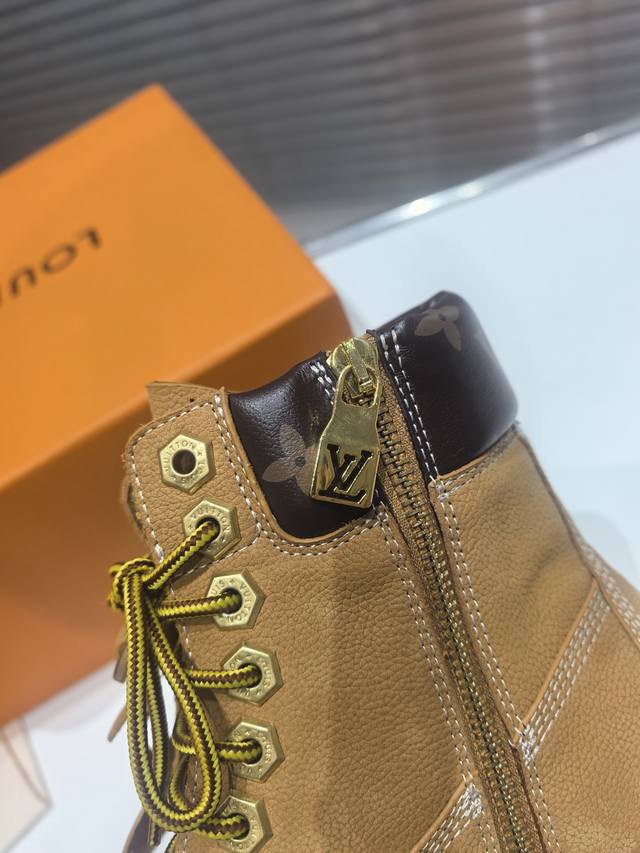 Real Price Louis Vuitton X Timberland Collaboration Via Instagram Lv 224 Early Autumn Timberland Yellow Boots DDD Many celebrities have worn them in various outfits. This is a limited edition autumn/winter style, very hard to find in stores. This will be the first hot item to ignite early autumn. Worth owning. Unique fashion trendsetting style. Highly recommended. DDD Material: Suede Ddd Lining: Cowhide Ddd Outsole: Two-tone rubber Ddd Heel height: 5 cm Ddd Sizes: 35-45 DDD Ddd