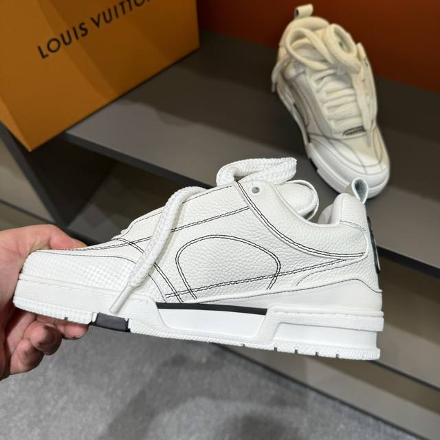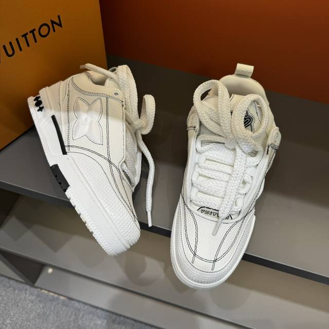 Sizes 38-45 L*Skate Sneakers - Thick-soled lace-up sneakers, made of top-grain cowhide, with contrasting rubber toe cap, thick lace-up design, large Monogram print on the side, "Lv 54" badges on the tongue and heel, Monogram floral embellishment on the rubber outsole, and a mesh lining with cotton insole for ultimate comfort. A timeless classic, superior quality, a worthy addition to any collection!