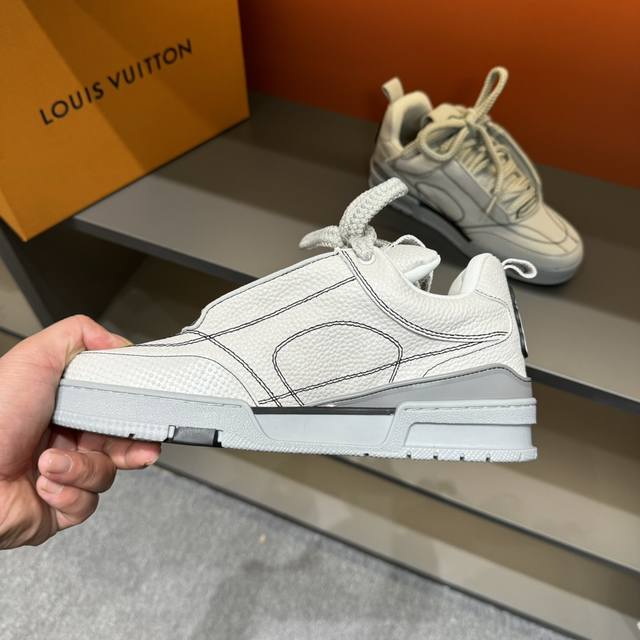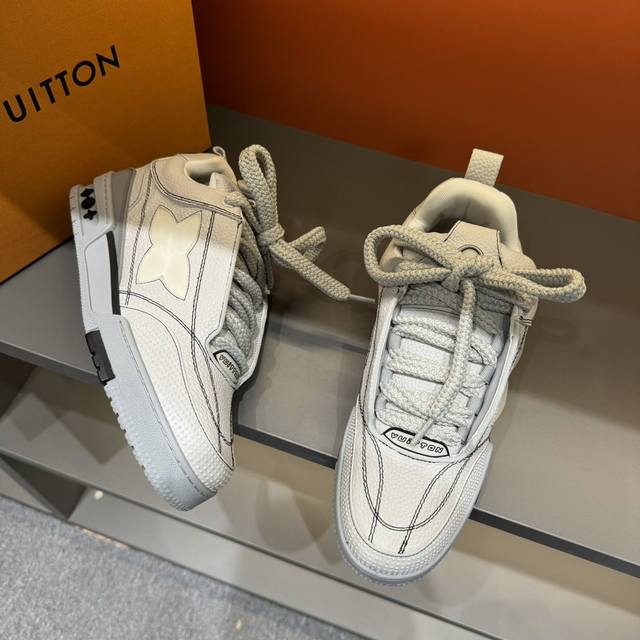 Sizes 38-45 L*Skate Sneakers - Thick-soled lace-up sneakers, made of top-grain cowhide, with contrasting rubber toe cap, thick lace-up design, large Monogram print on the side, "Lv 54" badges on the tongue and heel, Monogram floral embellishment on the rubber outsole, and a mesh lining with cotton insole for ultimate comfort. A timeless classic, superior quality, a worthy addition to any collection!