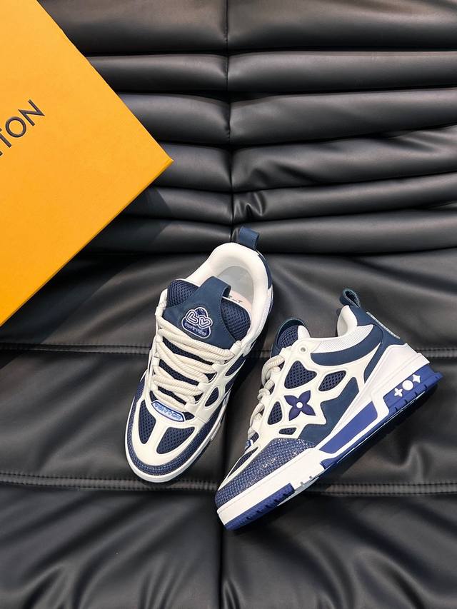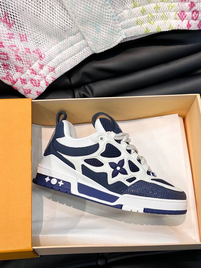 Sizes 38-45 L*Skate Sneakers - Thick-soled lace-up sneakers, made of top-grain cowhide, with contrasting rubber toe cap, thick lace-up design, large Monogram print on the side, "Lv 54" badges on the tongue and heel, Monogram floral embellishment on the rubber outsole, and a mesh lining with cotton insole for ultimate comfort. A timeless classic, superior quality, a worthy addition to any collection!