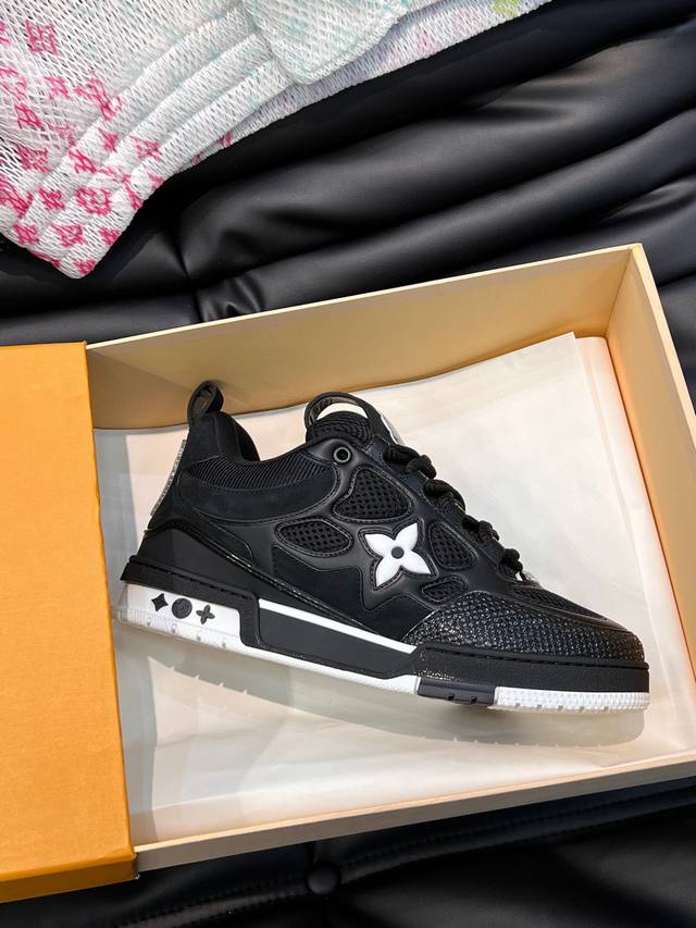Sizes 38-45 L*Skate Sneakers - Thick-soled lace-up sneakers, made of top-grain cowhide, with contrasting rubber toe cap, thick lace-up design, large Monogram print on the side, "Lv 54" badges on the tongue and heel, Monogram floral embellishment on the rubber outsole, and a mesh lining with cotton insole for ultimate comfort. A timeless classic, superior quality, a worthy addition to any collection!