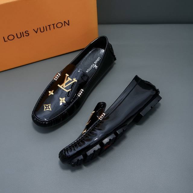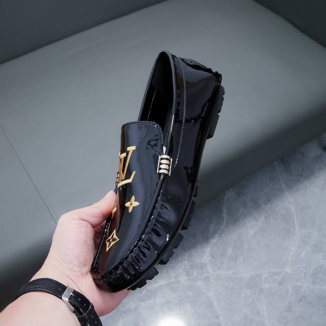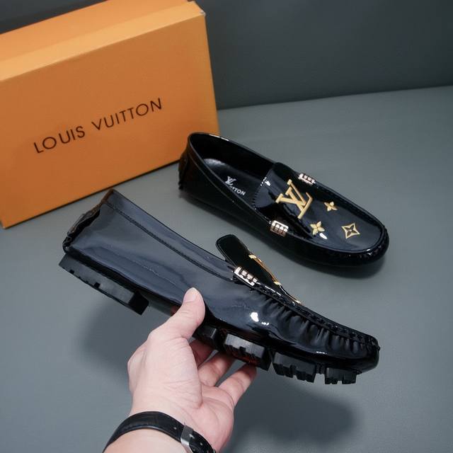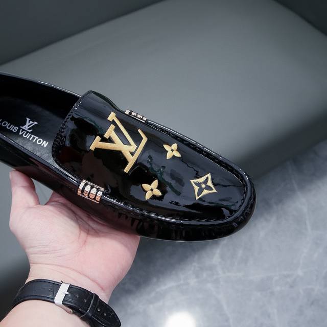 Lv Official Men's All-Season Business Casual Loafers, featuring the latest trendy elements that are trending globally. A hot seller on the official website, this is the original version, a 1:1 replica of those found in boutiques. The upper is made of imported Italian top-grain cowhide patent leather with embroidery, a truly high-end original anti-slip outsole, and a comfortable cowhide lining made of genuine materials. Comfort speaks for itself, making a prestigious gift. Don't miss out on this high-quality product. Sold only to discerning customers. Standard sizes 37-47.