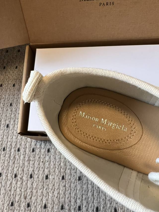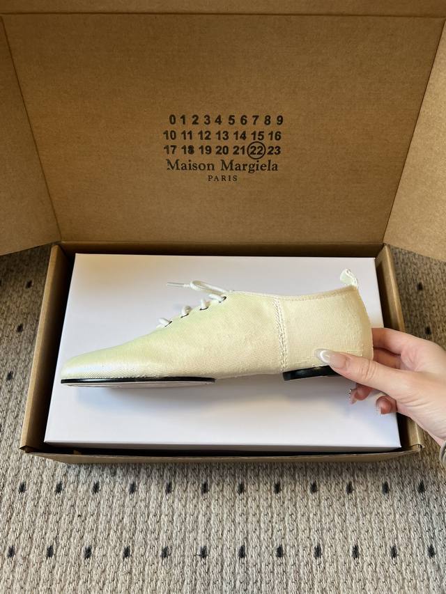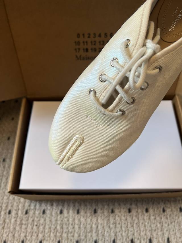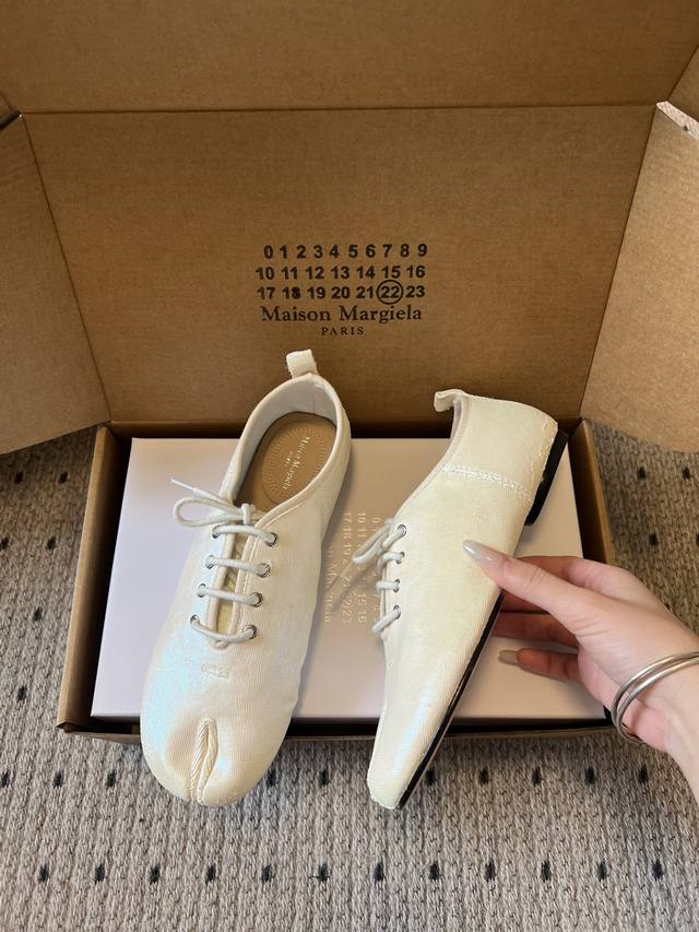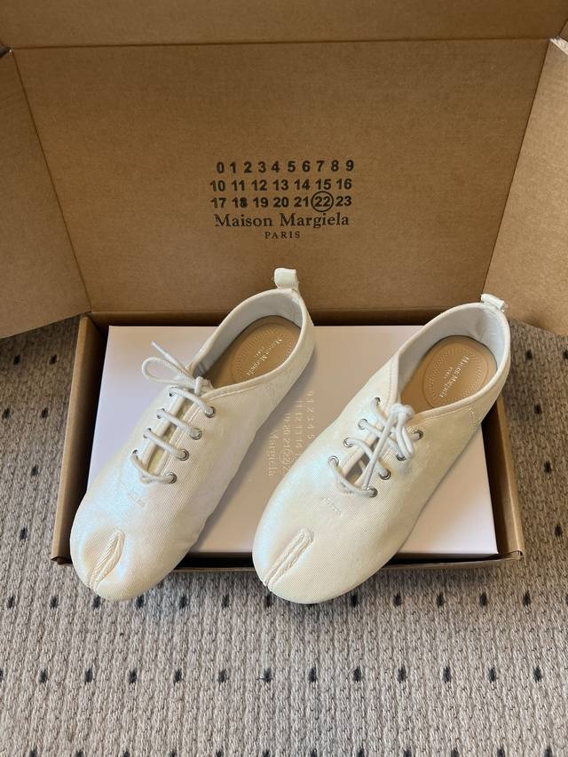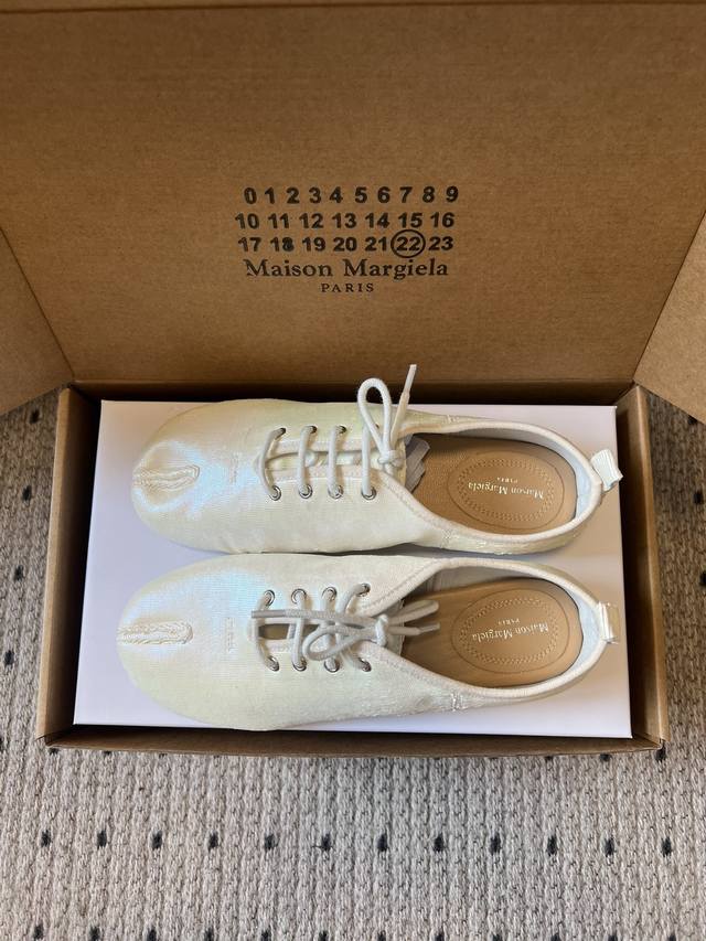 Maison Margiel* Low-top Flat Lace-up Casual Shoes with Split Toe DDD The Tabi toe design, originating from Japanese tabi socks, is a key identifying feature, dividing the toe in two and representing one of the brand's most iconic design languages. Materials include smooth leather and suede; the brand also uses high-end leathers such as sheepskin and horsehide. Some styles incorporate distressed or patchwork techniques. DDD The simple silhouette of the low-top lace-up design, paired with flat waxed laces, features minimal embellishment, with only a subtle brand logo on the tongue; the shoe box is printed with the brand's signature numerical code, enhancing brand recognition. DDD Upper: Sheepskin Ddd Lining: Sheepskin Ddd Outsole: Genuine Leather Outsole Ddd Height Increase: 1cm Ddd Size: 35-40, Size 40 (custom sizes, no returns or exchanges) Ddd DDD