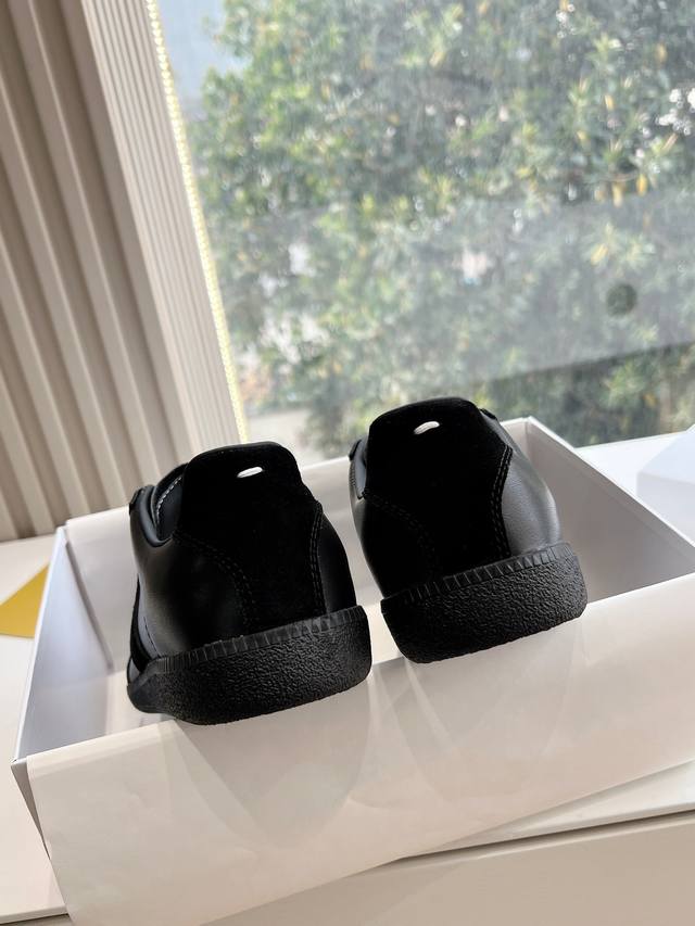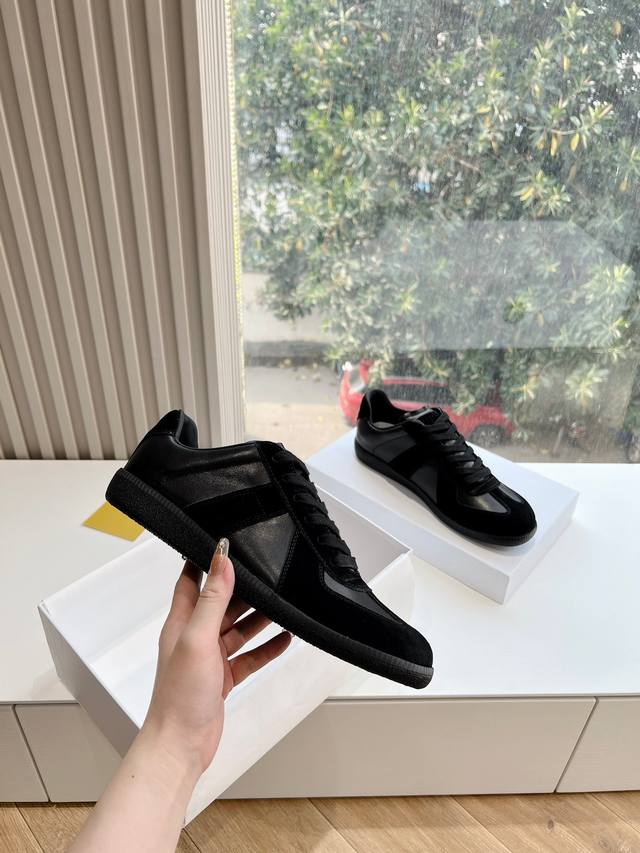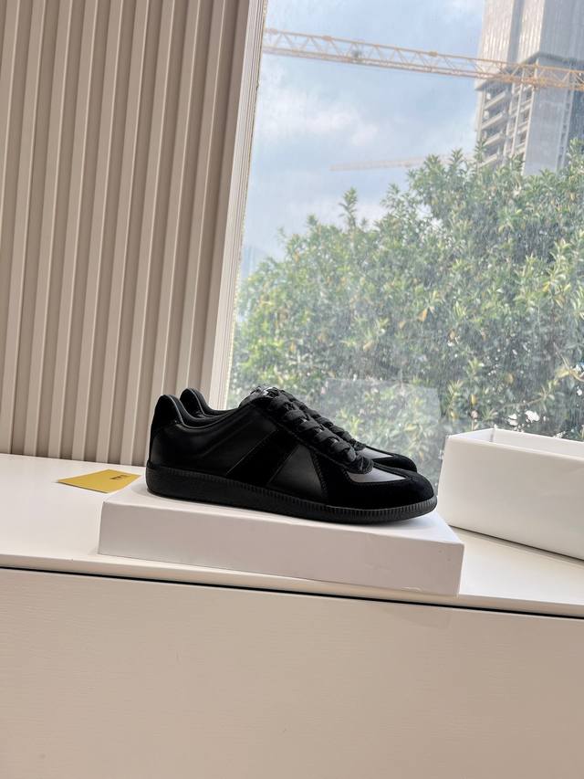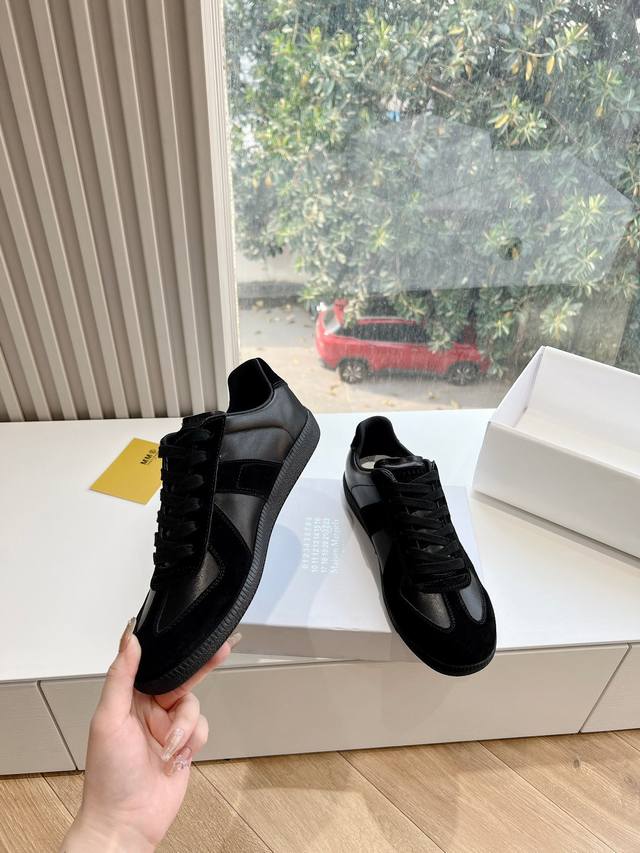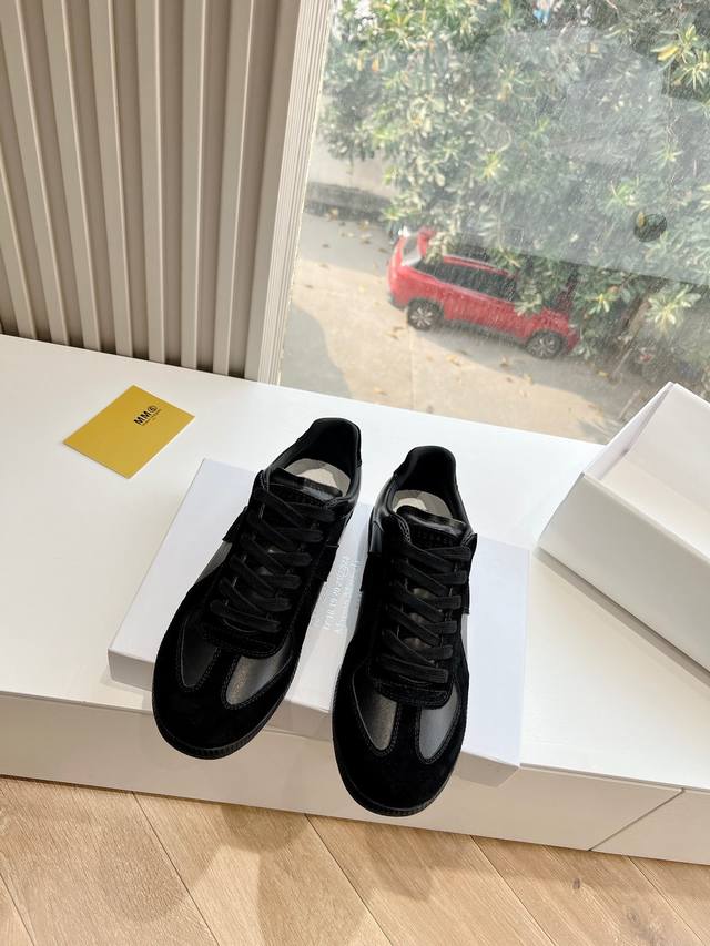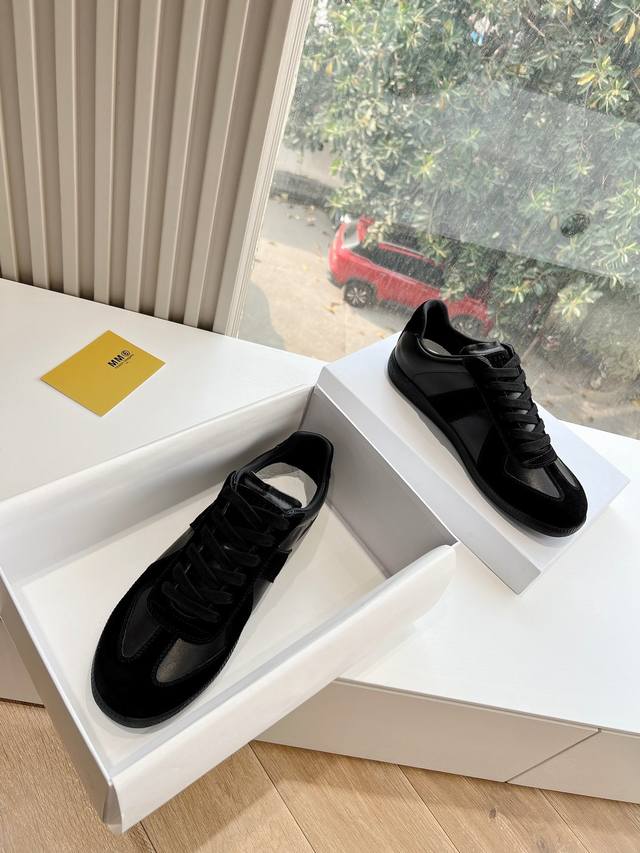 Maisonmargiela Mm6 German training casual shoes, a designer brand known for its innovative designs. A mid-range luxury brand, these shoes are incredibly versatile and comfortable. This German training shoe continues the classic T-shaped genuine leather patchwork design, meticulously refined by the design team to give you the most authentic military feel. The combination of soft, supple top-grain cowhide and the texture of suede provides exceptional softness and comfort while maintaining excellent breathability. Comfort and quality go hand in hand, easily adaptable to any season and any outfit. Material: Cowhide. Sizes: 35-40 (Women's 39, Men's 45).