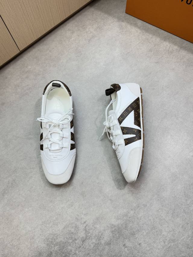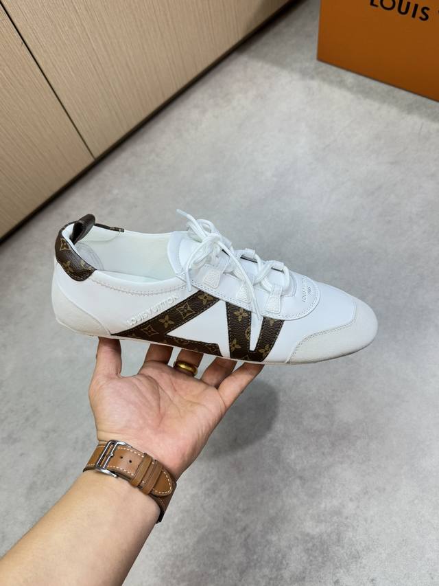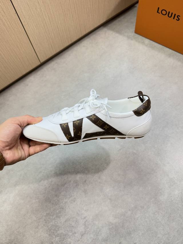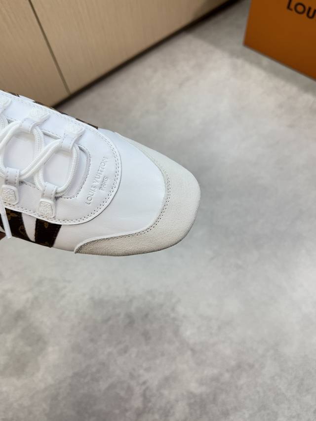 -Upper: Nappa calfskin, suede calfskin, tongue. Body. Injection molding brand logo, sewn brand totem