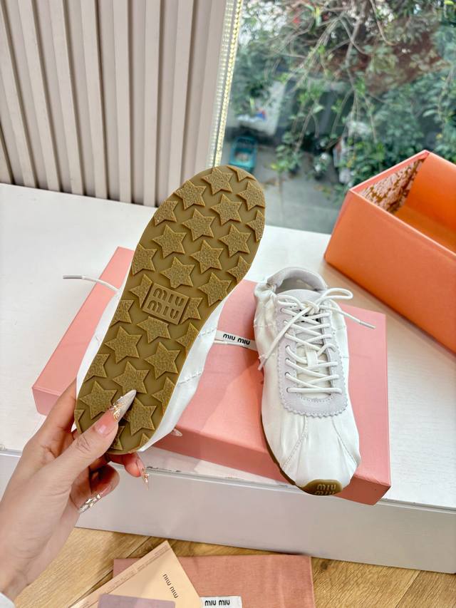 Miumiu Spring/Summer Latest Runway Style Thin-Soled Casual Shoes This is a super popular choice among celebrities, influencers, and bloggers worldwide, especially on Xiaohongshu (Little Red Book). Retro yet stylish, these shoes look amazing on! The simple athletic design and distinctive tongue create a relaxed and sweet casual style. They exude confidence and are easy to match with any outfit