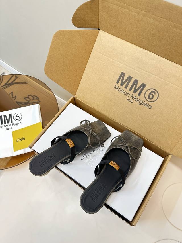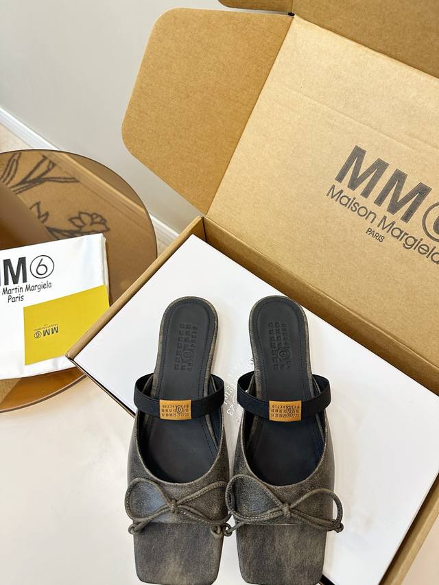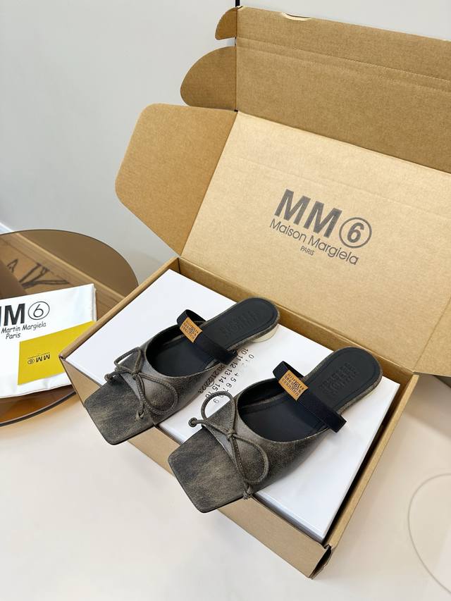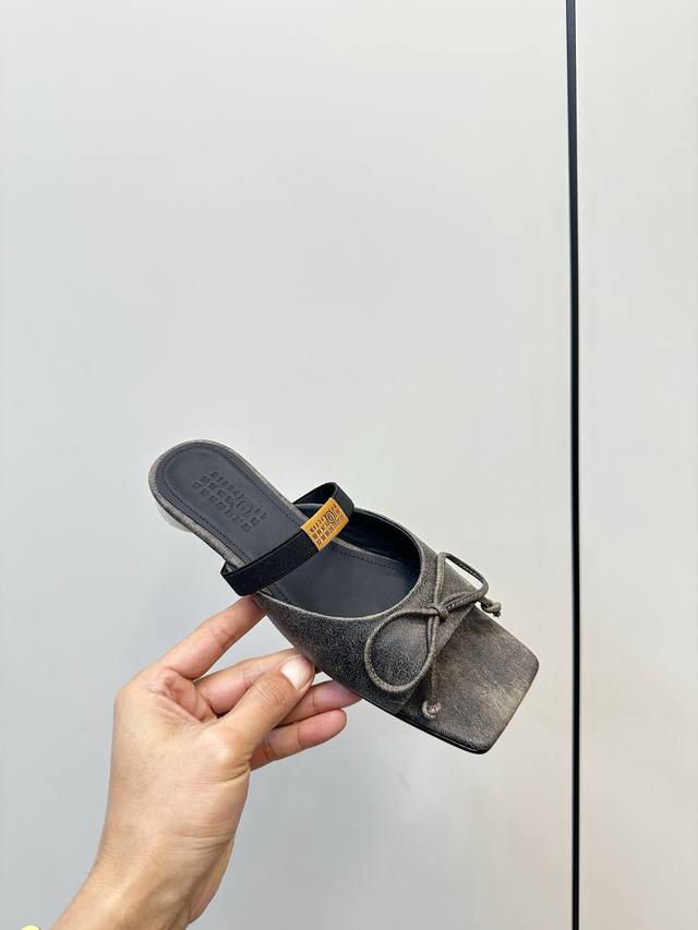 Mm6 Maison Margiela Square Toe Bow Mule Slippers DDD Mm6 Maison Margiela square toe ballet mules, the bow on the upper is super recognizable! Open-back mule design + elastic band, easy to put on and take off, fits the foot shape, comfortable and stylish, easily handles daily commutes and casual wear, pairs effortlessly with skirts and jeans, elegant yet relaxed, effortlessly achieving a sophisticated and relaxed look! Ddd Upper: Crackled Napa leather Ddd Sole: Italian genuine leather, top-notch quality Ddd Sizes: 35-39, 40.41 custom sizes. DDD Ddd