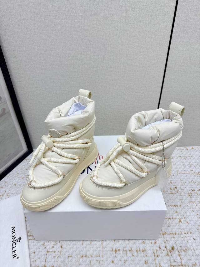 High-quality factory-made Moncler 2025 new snow boots, a perfect blend of luxury and function. Like a walking down jacket: waterproof nylon + fleece lining, suitable for walking in snow even at -10