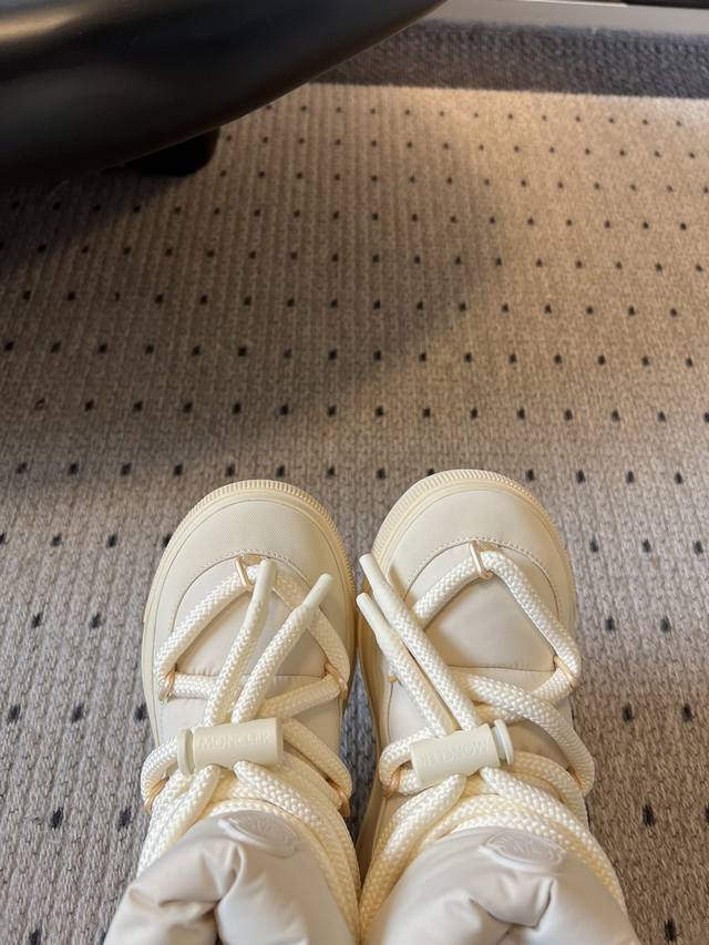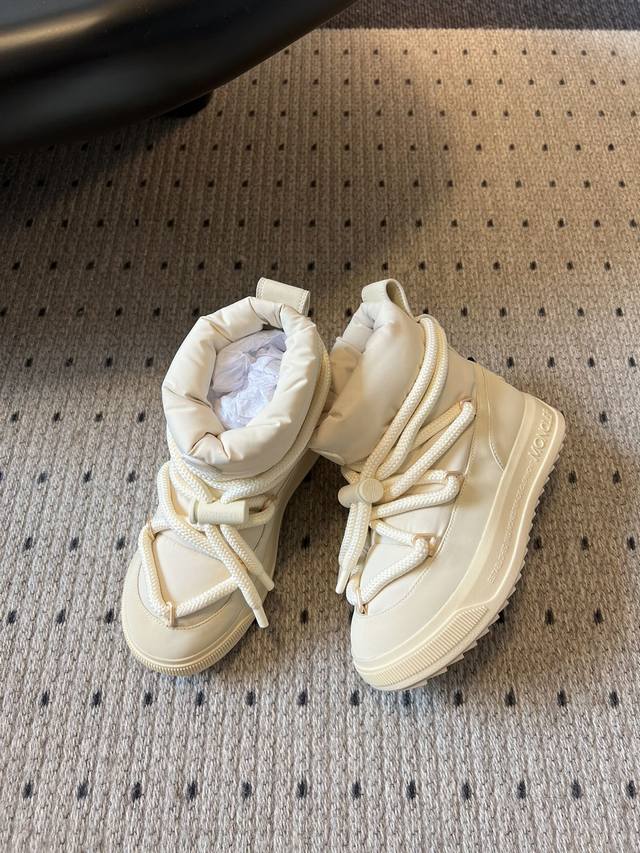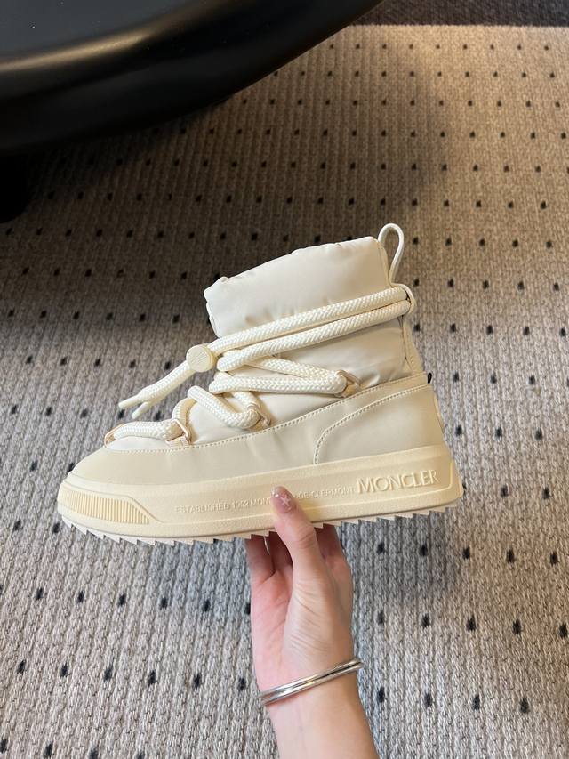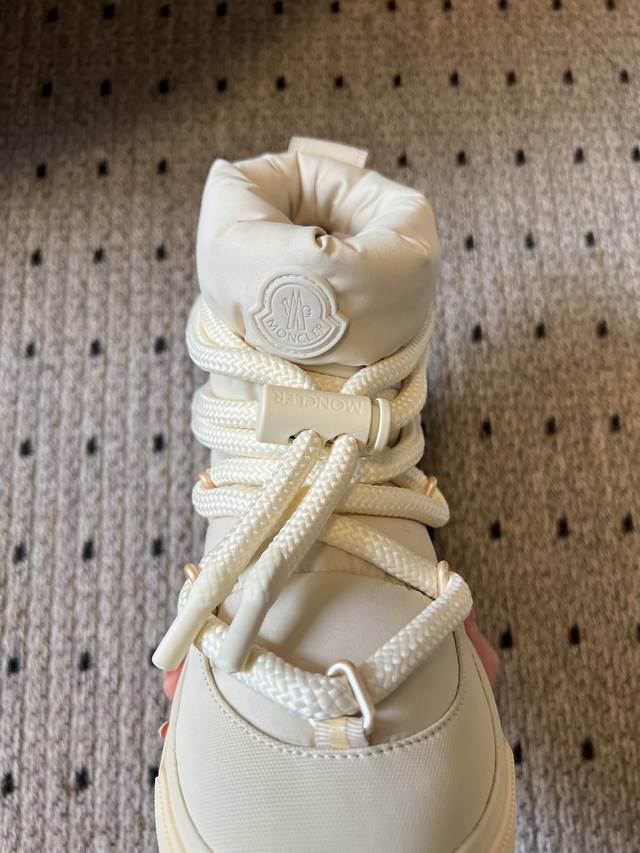 Moncler Down Casual Shoes DDD This high-top casual shoe features a stylish and layered design. The pleated design on the upper and large laces add a trendy touch while incorporating the brand's outdoor style, combining fashion and functionality. DDD It uses a combination of down-like filling and leather, resulting in a unique texture and exquisite craftsmanship. The combination of different materials enhances the shoe's design and improves warmth and durability. DDD Upper: Waterproof coated ski fabric DDD Lining: Cashmere lining DDD Outsole: TPU outsole DDD Size: 35-41 DDD