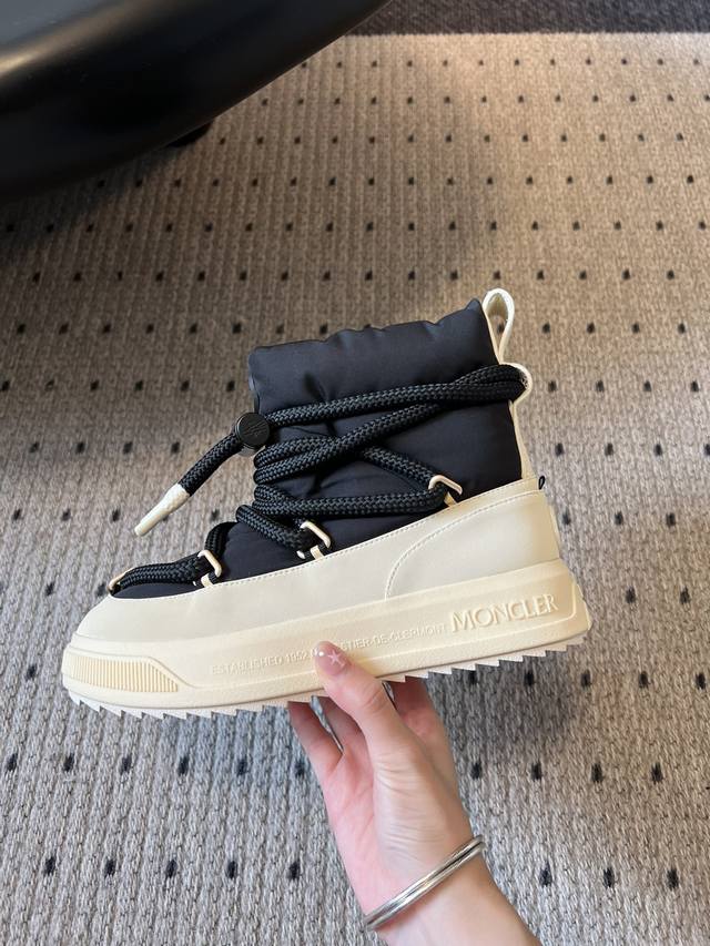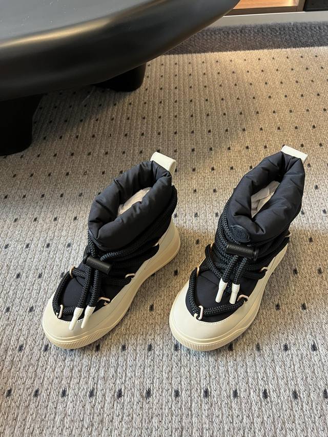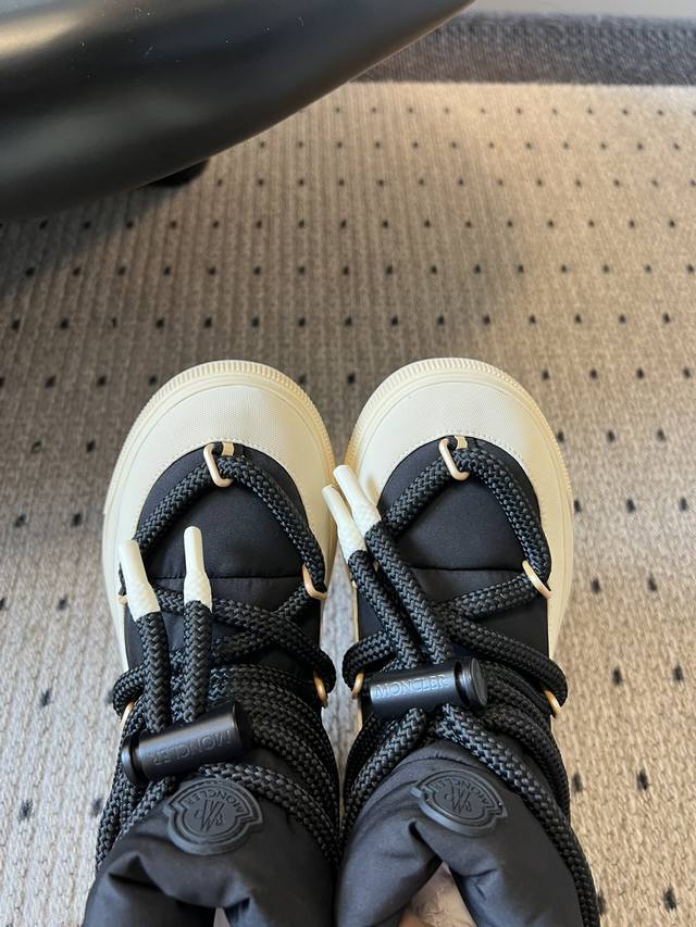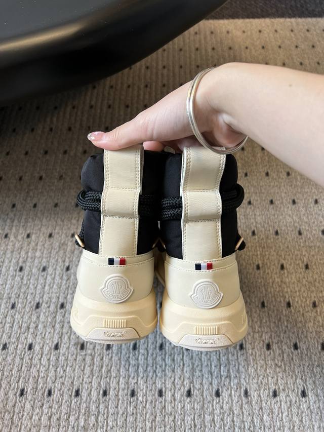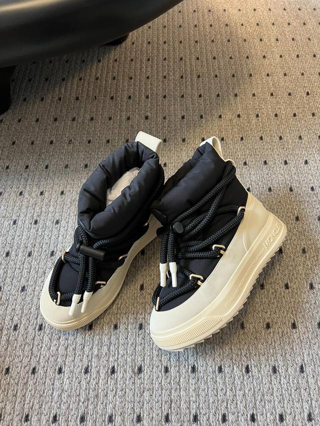 Moncler Down Casual Shoes DDD This high-top casual shoe features a stylish and layered design. The pleated design on the upper and large laces add a trendy touch while incorporating the brand's outdoor style, combining fashion and functionality. DDD It uses a combination of down-like filling and leather, resulting in a unique texture and exquisite craftsmanship. The combination of different materials enhances the shoe's design and improves warmth and durability. DDD Upper: Waterproof coated ski fabric DDD Lining: Cashmere lining DDD Outsole: TPU outsole DDD Size: 35-41 DDD