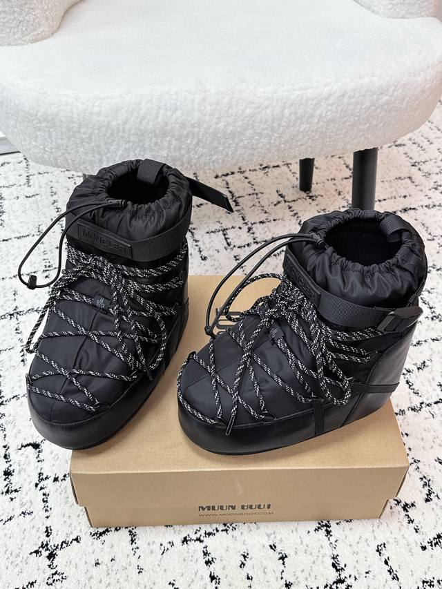 Moncler Grenoble X Moon Boot 25 Latest Collaboration Icon Drawstring Snow Boots DDD A pair of shoes that don't distinguish between left and right feet! Super unique! Soft and cozy like bread, these plush boots are characterized by their full plush material, strong warmth retention, and excellent heat retention in autumn and winter. The material is fluffy and soft, fits comfortably on the foot, and won't make your feet feel stuffy even after wearing it for a long time. A variety of colors are available, including basic and soft colors, suitable for different styles. DDD The style combines casual and fashionable elements, suitable for everyday wear and street style. DDD Moonboot's classic styles are too impractical for everyday wear, and they take up too much space in your suitcase. This shopping genius discovered the Park series, which is warm and suitable for everyday wear. "Soulmate" is a soulmate. DDD Upper: Custom technical leather upper DDD Lining: Silk floss filling DDD Outsole: Non-slip rubber outsole DDD Height increase: 7cm DDD Size: #35-41 DDD