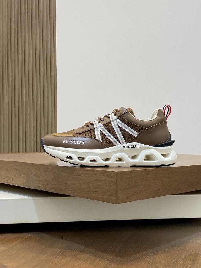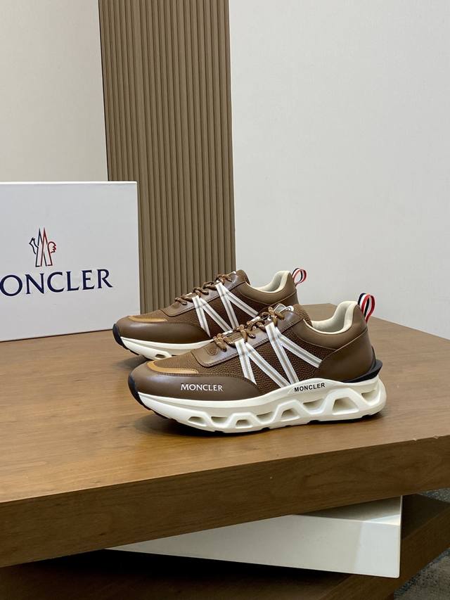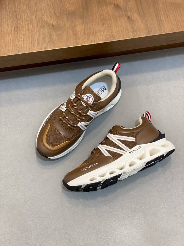 Moncler Men's Sneakers, crafted from imported cowhide leather and neoprene rubber. The upper features laces and rubber inserts, the Moncler logo on the heel, and the outsole is made of TPU, rubber, and high-elasticity rubber foam, offering high elasticity, durability, and enhanced comfort. Both the upper and color design make these shoes worth buying! Sizes: 39-44, 38, 45 (Custom sizes available).